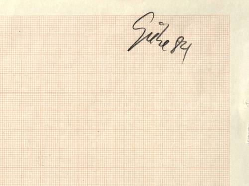 1984. Zeichnung / Graphitzeichnung, auf rötlichem Millimeterpapier. – Originale Künstlergrafik, von Hubertus Giebe. – Unikat. – 42,2 x 59,4 cm (Darstellung / Blatt).