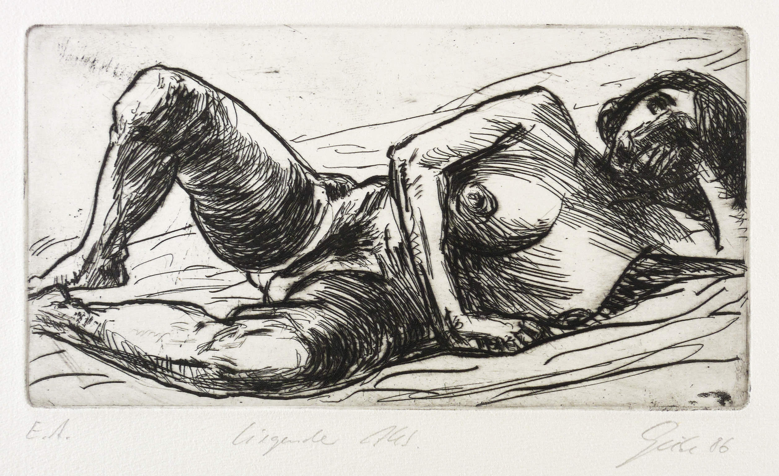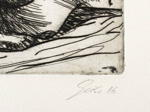Rechts unten in Bleistift signiert und datiert: ″Giebe 86″. Links Auflagenbezeichnung. Mittig Titel. Wasserzeichen der Papiermühle. – Sehr guter Zustand.