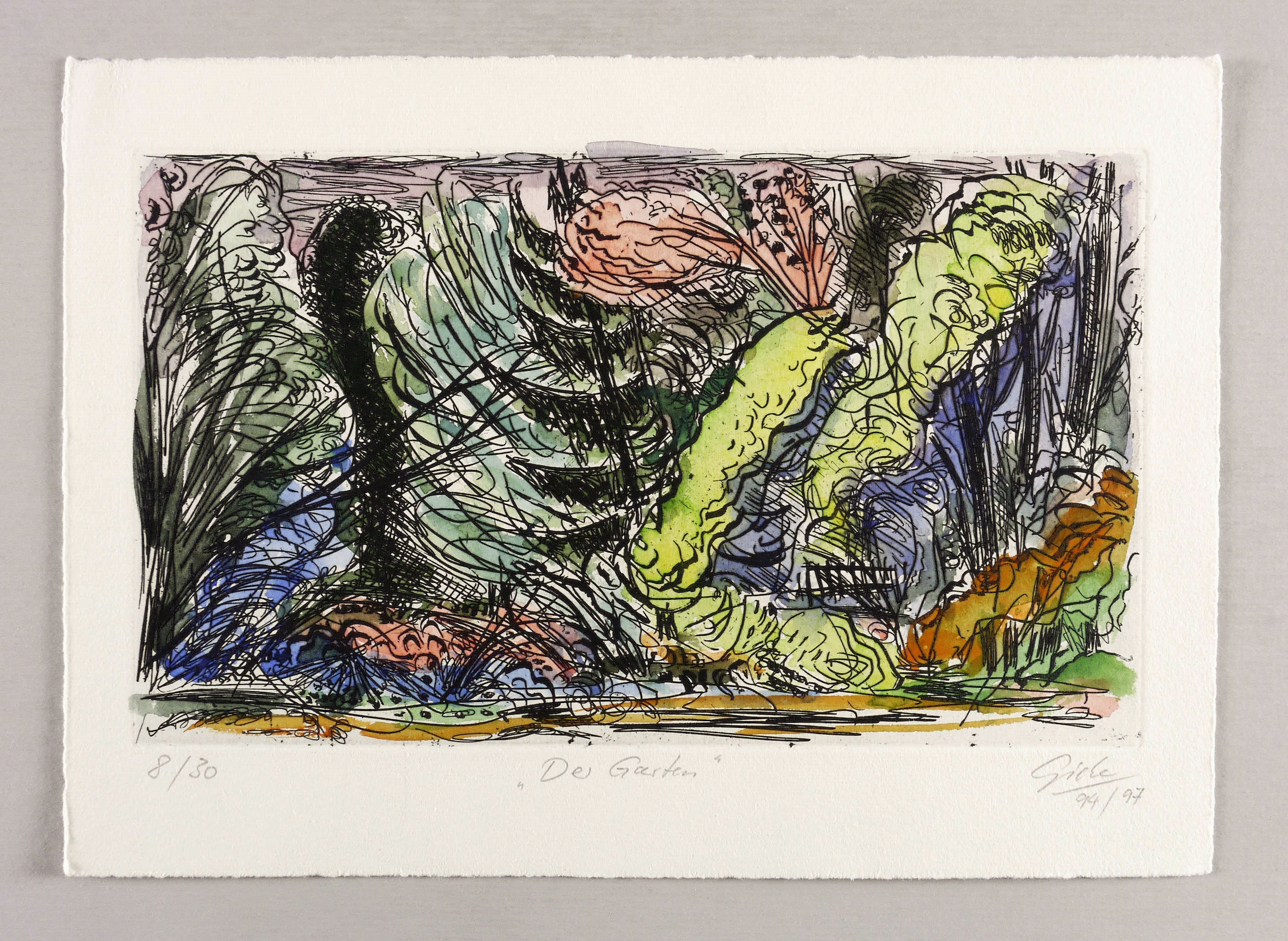 Rechts unten in Bleistift signiert und datiert: ″Giebe 94/97″. Links Auflagenbezeichnung: ″8/30″. Mittig Titel: ″Der Garten″. – Tadellos. Sehr guter Zustand.