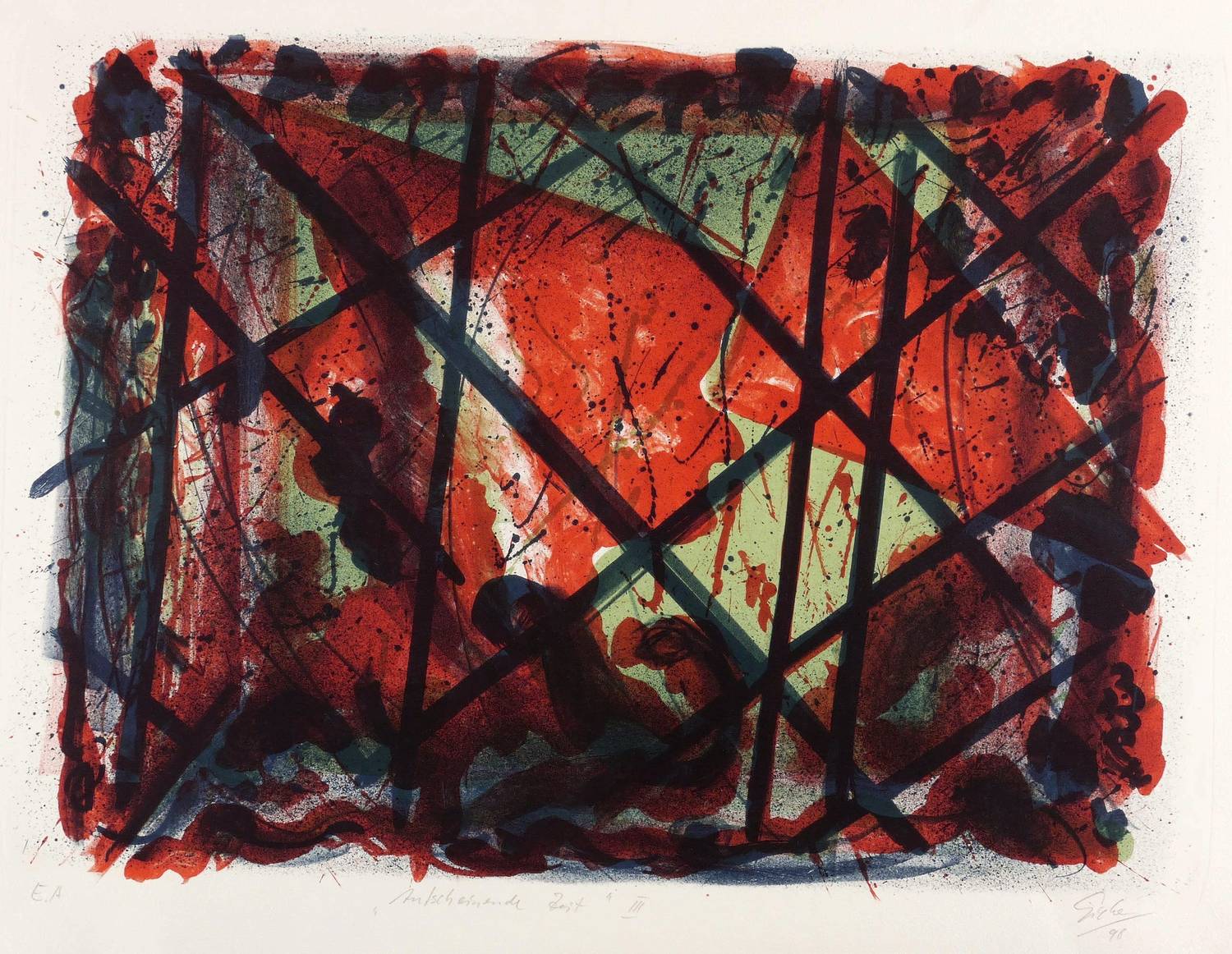 Rechts unten in Bleistift signiert und datiert: ″Giebe 98″. Links Auflagenbezeichnung. Mittig Titel. Wasserzeichen der Hahnemühle. – Durchgehend leichte Lagerspuren. Im rechten Rand oberflächliche Kratzer außerhalb der Darstellung. Mäßig guter Zustand.
