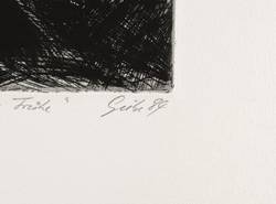 Rechts unten in Bleistift signiert und datiert: ″Giebe 84″. Links Auflagenbezeichnung und Titel: ″XI/XX // zu Max Jacob 'Farben der Frühe'″. Trockenstempel des Druckers Heinz Sparwart. – Exemplar der römisch nummerierten Vorzugsauflage. – Tadellos. Sehr guter Zustand.