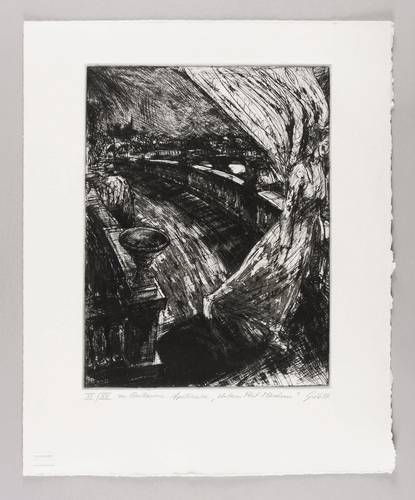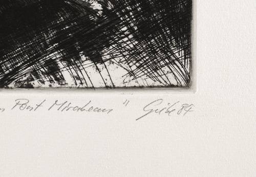 Rechts unten in Bleistift signiert und datiert: ″Giebe 84″. Links Auflagenbezeichnung und Titel: ″XI/XX // zu Guillaume Apollinaire 'Unterm Pont Mirabeau'″. Trockenstempel des Druckers Heinz Sparwart. – Exemplar der römisch nummerierten Vorzugsauflage. – Tadellos. Sehr guter Zustand.