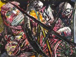 Hubertus Giebe (*1953 Dohna / Sachsen, lebt und arbeitet in Dresden). Deutscher Maler und Grafiker, bedeutender Vertreter des Expressiven Realismus. 1969-72 Abendstudium der Malerei und Grafik an der Hochschule für Bildende Künste. 1974-76 Studium der Malerei und Grafik an der HfBK Dresden. 1976 Exmatrikulation auf eigenen Wunsch. 1978 externes Diplom an der Hochschule für Grafik und Buchkunst Leipzig. Meisterschüler von Bernhard Heisig. 1982-86 Leitung des Grundlagenstudiums für Malerei und Grafik an der HfBK Dresden. 1987 Berufung zum Dozenten für Malerei und Grafik an der HfBK Dresden. 2004 Vertretungsprofessur für Malerei an der Universität Dortmund.