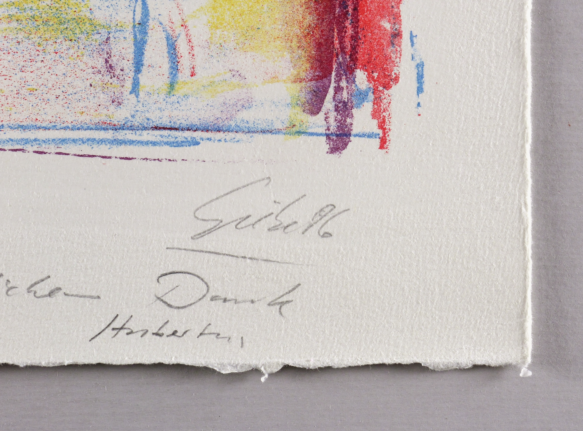 1986. Farblithografie / Pinsel- & Kreidelithografie, in 4 Farben, auf schwerem hellchamois Hahnemühle. – Originale Künstlergrafik, von Hubertus Giebe. – Auflage Exemplar Nr. 1/20. – 45,5 x 34,4 cm (Darstellung / Druckbild), 54 x 40 cm (Blatt).