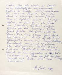 Text: ″Porträt. Jede echte Kreation ist berührt von der Rätselhaftigkeit und erstaunlichen Existenz des Lebens. Bild ist annehmendes oder ablehnendes Gleichnis. Der andere Mensch ist einmaliges, anderes Geschehen. Form ist Erfahrung und rein. Sie steigt auf aus der Zeit bis an die Grenze des Gedankens. Gesichter: verschoben, verzerrt oder hell. Zerschlagene Gesichter. Gehetzte Gesichter. Satte Gesichter. Oder das Ganz-Feine, Ganz-Winzige, Ganz-Spitze, das Haarscharfe - Feinheit, die alles trennt. Wesensgräben zwischen uns. Köpfe: Wölbungen, Einsinkendes; manchmal Membranen über Blut gespannt. Porträt ist auch Erinnern. Zeitstillstand. Herreißen eines Gesichts vor dem Wegsinken in die Zeit - Eintauchen in die Oasen des Gebildes. Kennzeichnung. Porträts sind Sonden nach innen. Somnambul.″ Rechts unten signiert und datiert: ″H. Giebe 1980″. – Niederschrift zum Thema Porträt- bzw. Bildniskunst. – Provenienz: Sammlung Erhard Frommhold, Dresden. – Originalrandig und zweifach gefaltet. Im Rand leicht gegilbt. Guter Zustand.