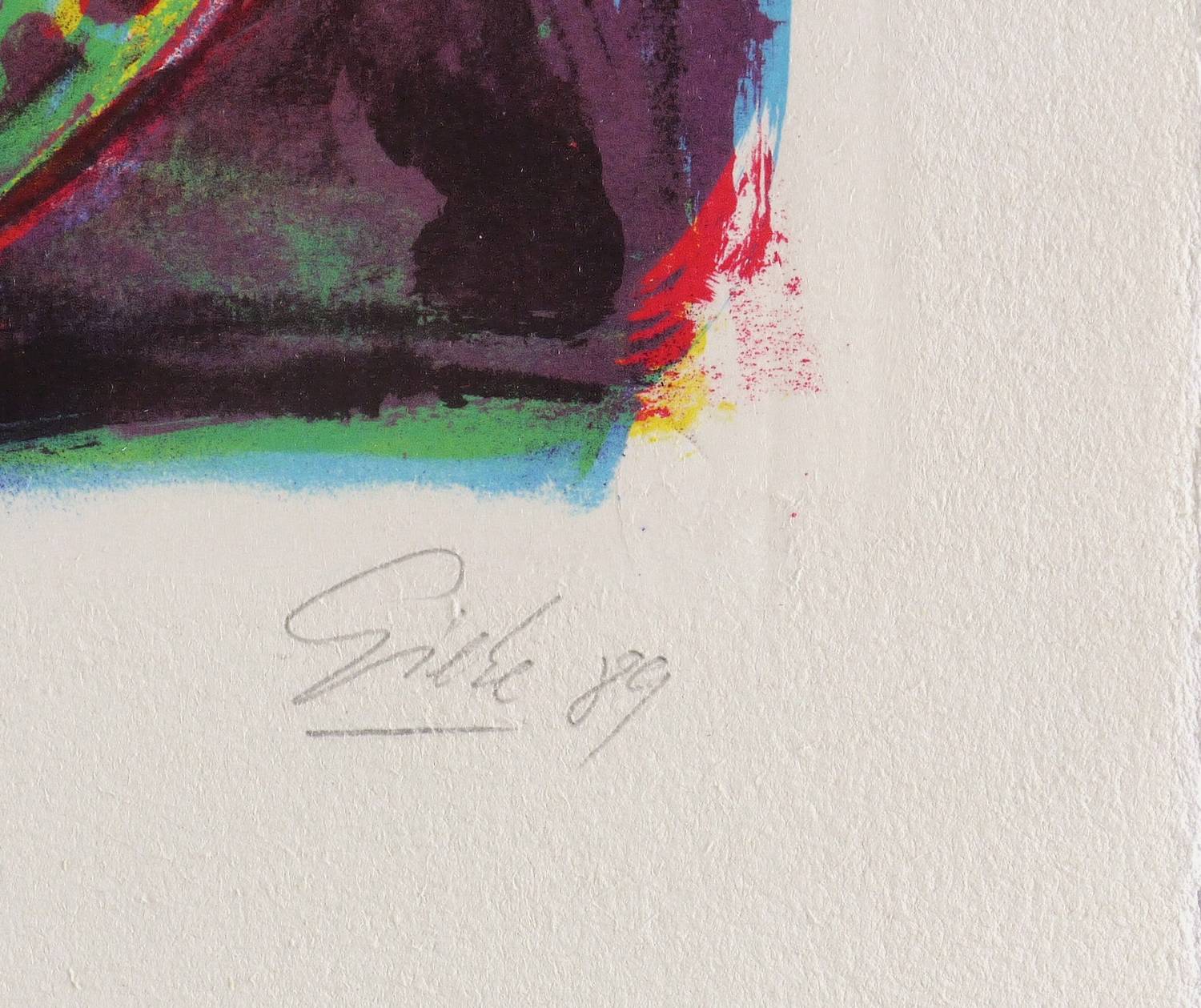1989. Farblithografie / Kreide- & Pinsellithografie, in 4 Farben, auf schwerem hellchamois Hahnemühle. – Originale Künstlergrafik, von Hubertus Giebe. – Künstlerexemplar (e.a.). – 57,0 x 46,4 cm (Darstellung / Druckbild), 71 x 54 cm (Blatt).