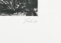 Rechts unten in Bleistift signiert und datiert: ″Giebe 88″. Links Auflagenbezeichnung: ″Beleg″. Mittig Titel:″zu G. Grass 'Die Blechtrommel'″. – Makellos. Sehr guter Zustand.