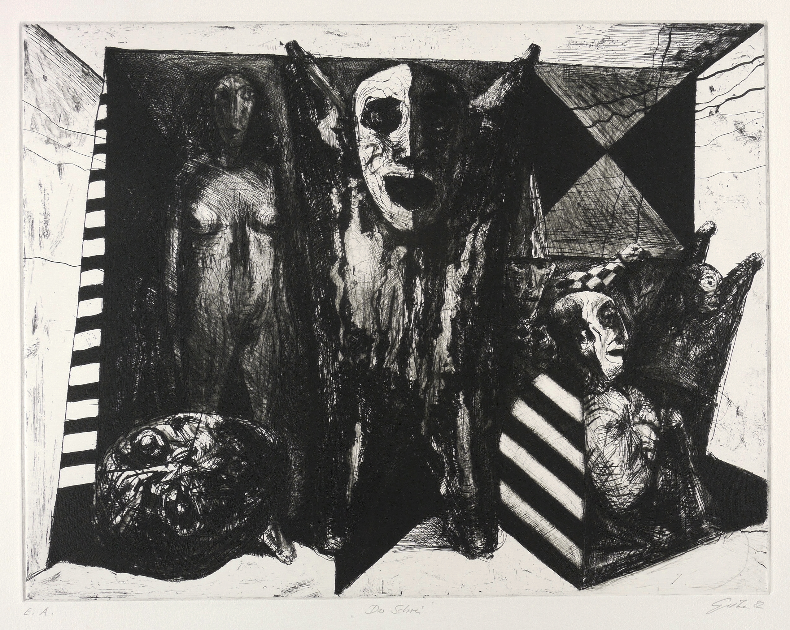 Rechts unten in Bleistift signiert und datiert: ″Giebe 82″. Links Auflagenbezeichnung: E.A.″ Mittig Titel: ″Der Schrei″. Blindstempel des Druckers Heinz Sparwart, Dresden. Wasserzeichen der Hahnemühle. – Sehr guter Zustand.