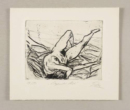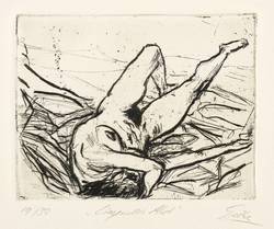 Rechts unten in Bleistift signiert: ″Giebe″. Links Auflagenbezeichnung: ″19/20″. Mittig Titel: ″Liegender Akt″. Trockenstempel des Druckers Heinz Sparwart, Dresden. – Sehr guter Zustand.