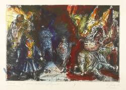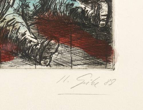 Rechts unten in Bleistift signiert und datiert: ″H. Giebe 88″. Links Auflagenbezeichnung: ″Zustand″. Mittig Titel: ″Mystisch, barbarisch, gelangweilt... II″. – Ohne Mängel. Sehr guter Zustand.
