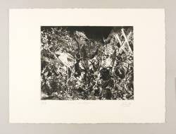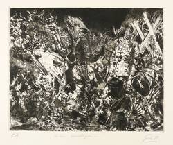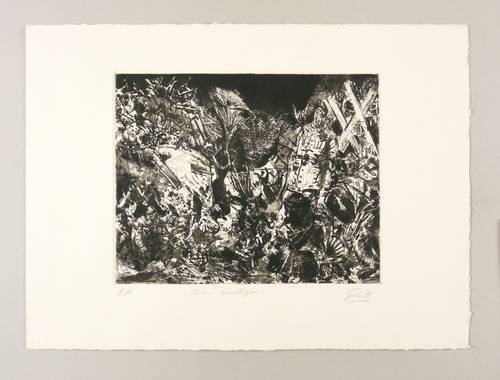 1988. Radierung / Strichätzung, Reservage, Aquatinta & Kaltnadel, in Schwarz, auf kräftigem hellchamois Velin. – Originale Künstlergrafik, von Hubertus Giebe. – Künstlerexemplar (e.a.). – 25,5 x 32,5 cm (Darstellung / Platte), 39 x 54 cm (Blatt).