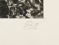 Rechts unten in Bleistift signiert und datiert: ″Giebe 88″. Links Auflagenbezeichnung: ″E.A.″ Mittig Titel: ″Beton besichtigen″. – Ohne Mängel. Sehr guter Zustand.