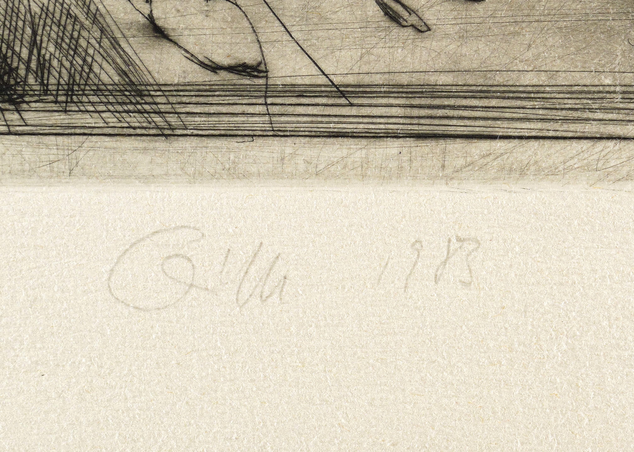1983. Radierung / Kaltnadel & Roulette, mit Plattenton, in Schwarz, auf chamois Hahnemühle. – Originale Künstlergrafik, von Sighard Gille. – Auflage Exemplar Nr. 70/100. – 49,1 x 64,2 cm (Darstellung / Platte), 57 x 79 cm (Blatt).