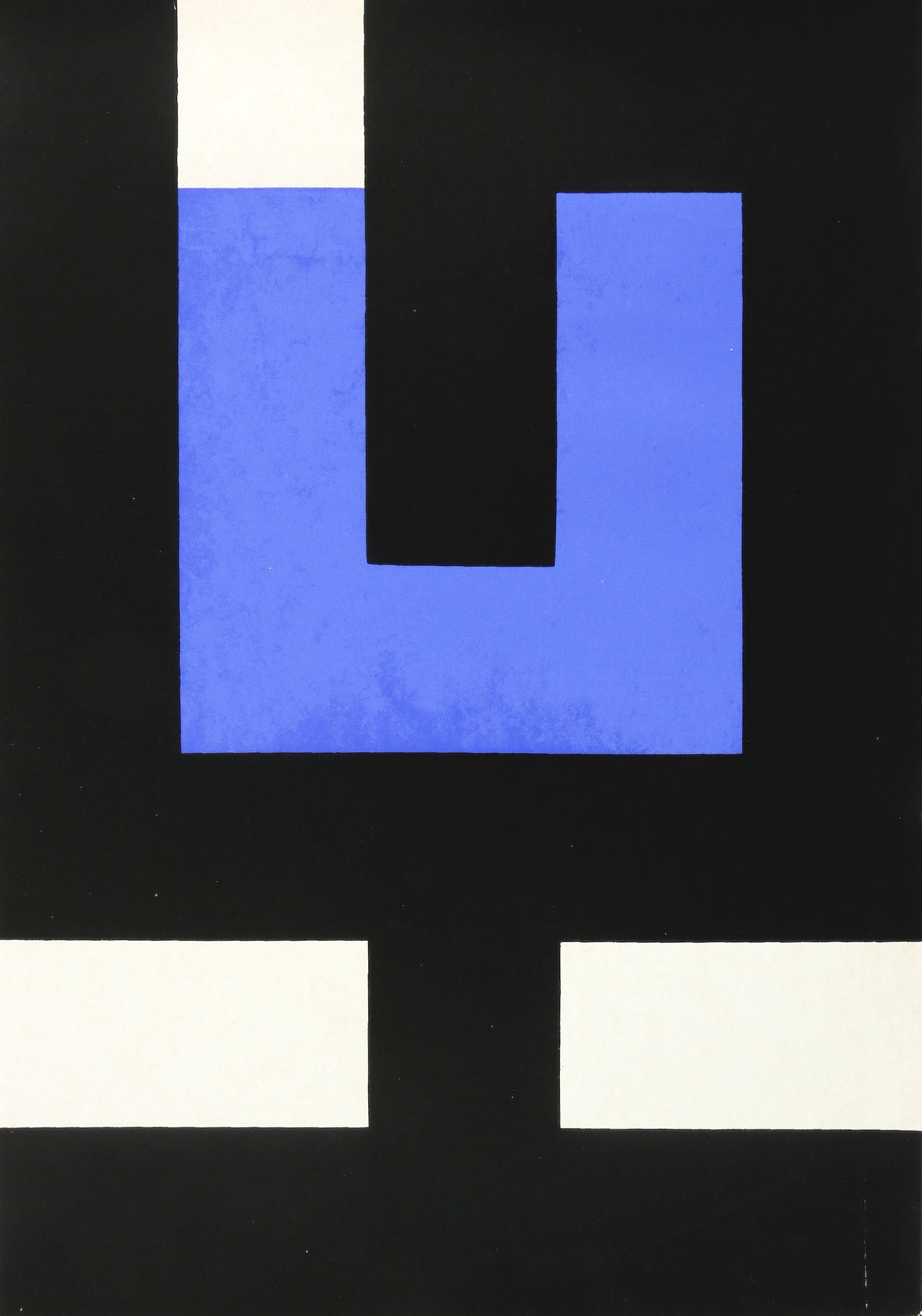 1972/1976. Farbsiebdruck / Farbserigrafie, in Blau & Schwarz, auf glattem hellchamois Karton. – Originale Künstlergrafik, von Hermann Glöckner. – 26,0 x 18,3 cm (Darstellung / Blatt).