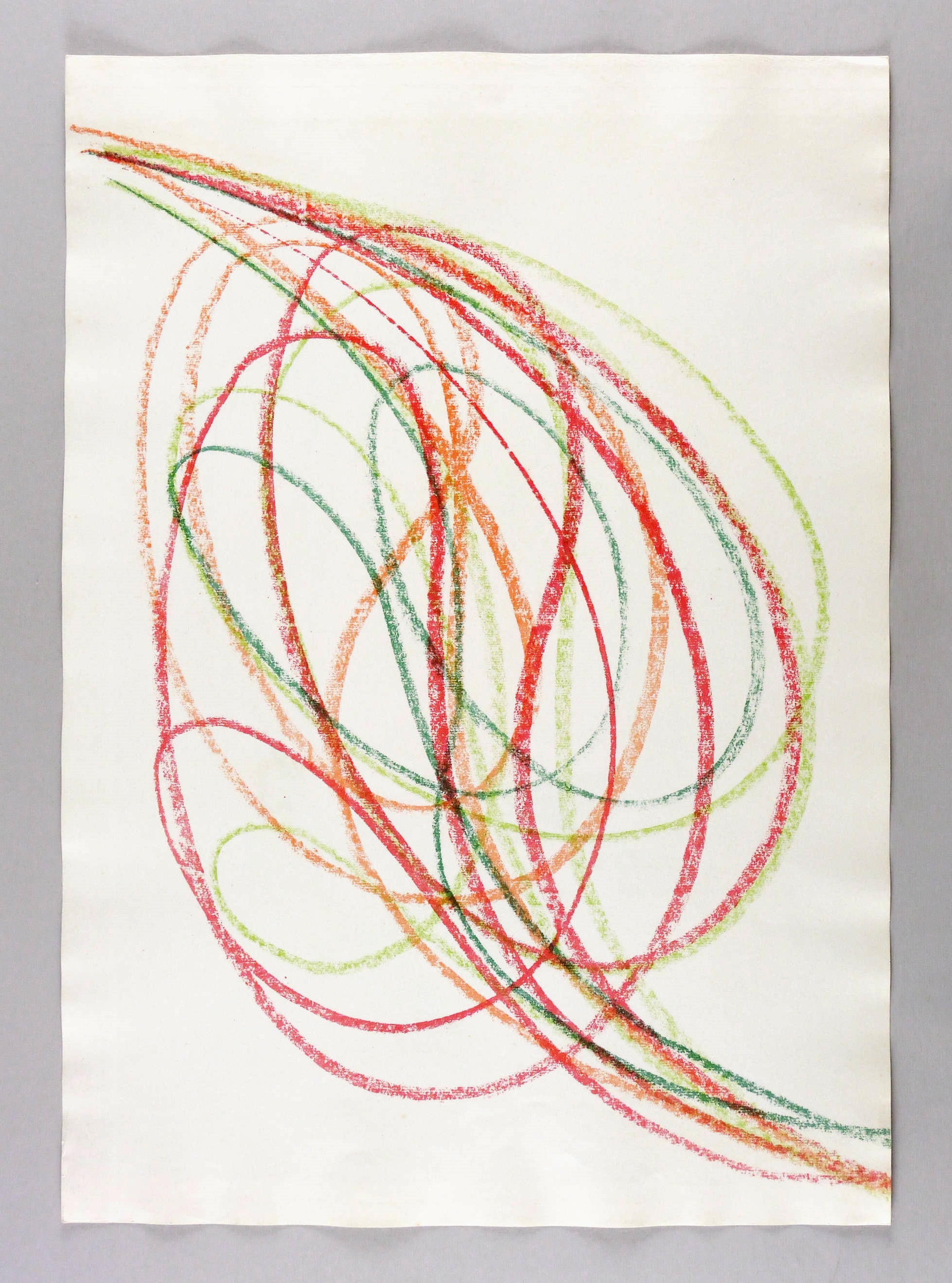Nicht handsigniert. Verso in Bleistift bezeichnet: ″Probedruck, Hermann Glöckner 1984″. Dazu vom Steindrucker Michael Wackwitz signiert. – Einzige Lithografie des Künstlers. Basierend auf einer mehrfarbigen Handzeichnung aus der Werkgruppe der ″Schwünge″. 1984 unter Aufsicht des Künstlers in der städtischen Druckwerkstatt in Dresden-Friedrichstadt vom Steindrucker Michael Wackwitz aufwändig von 4 Steinen gedruckt. – Probedruck vor der Auflage von 50 nummerierten Exemplaren. – Tadellos. Seitliche Papierkanten kaum merklich gewellt. Sehr guter Zustand.