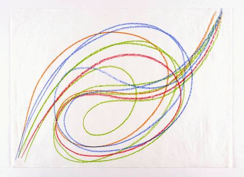 1983. Zeichnung / Farbkreide, in 4 Farben, auf wolkigem weißlichem Similijapan. – Originale Künstlergrafik, von Hermann Glöckner. – Unikat. – 50,1 x 70,4 cm (Darstellung / Blatt).
