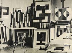 Hermann Glöckner (1889 Cotta bei Dresden - 1987 Berlin). Deutscher konstruktivistischer Maler, Grafiker und Bildhauer. 1904-11 Besuch der Abendkurse an der Kunstgewerbeschule Dresden bei Edmund Schuchardt und Kurt Fiedler. 1914-18 als Soldat im 1. Weltkrieg. 1923/24 Studium an der Kunstakademie Dresden bei Otto Gussmann. 1945 Verlust fast des gesamten Oeuvres durch Kriegszerstörung. 1945-48 Mitglied der Künstlergruppe "Der Ruf". Lebte und arbeitete im Künstlerhaus Loschwitz in Dresden, in den letzten Lebensjahren auch in West-Berlin. Galt innerhalb der geduldeten konstruktivistisch-abstrakten Dresdner Kunstszene als zentrale Leitfigur. Zahlreiche Aufträge für baugebundene Plastik im öffentlichen Raum. 1984 Nationalpreis der DDR III. Klasse für Kunst und Literatur.