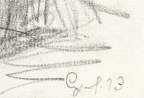 2013. Zeichnung / Graphitzeichnung, partiell gewischt, auf Maschinenbütten. – Originale Künstlergrafik, von Peter Graf. – Unikat. – 21,2 x 27,5 cm (Darstellung / Blatt), 25 x 34 cm (Trägerkarton).