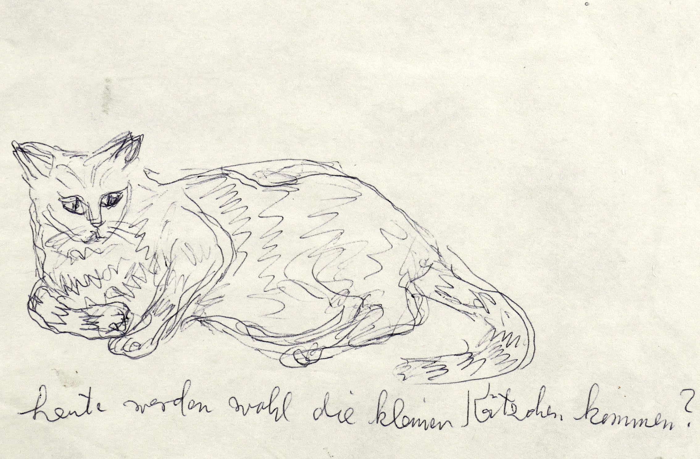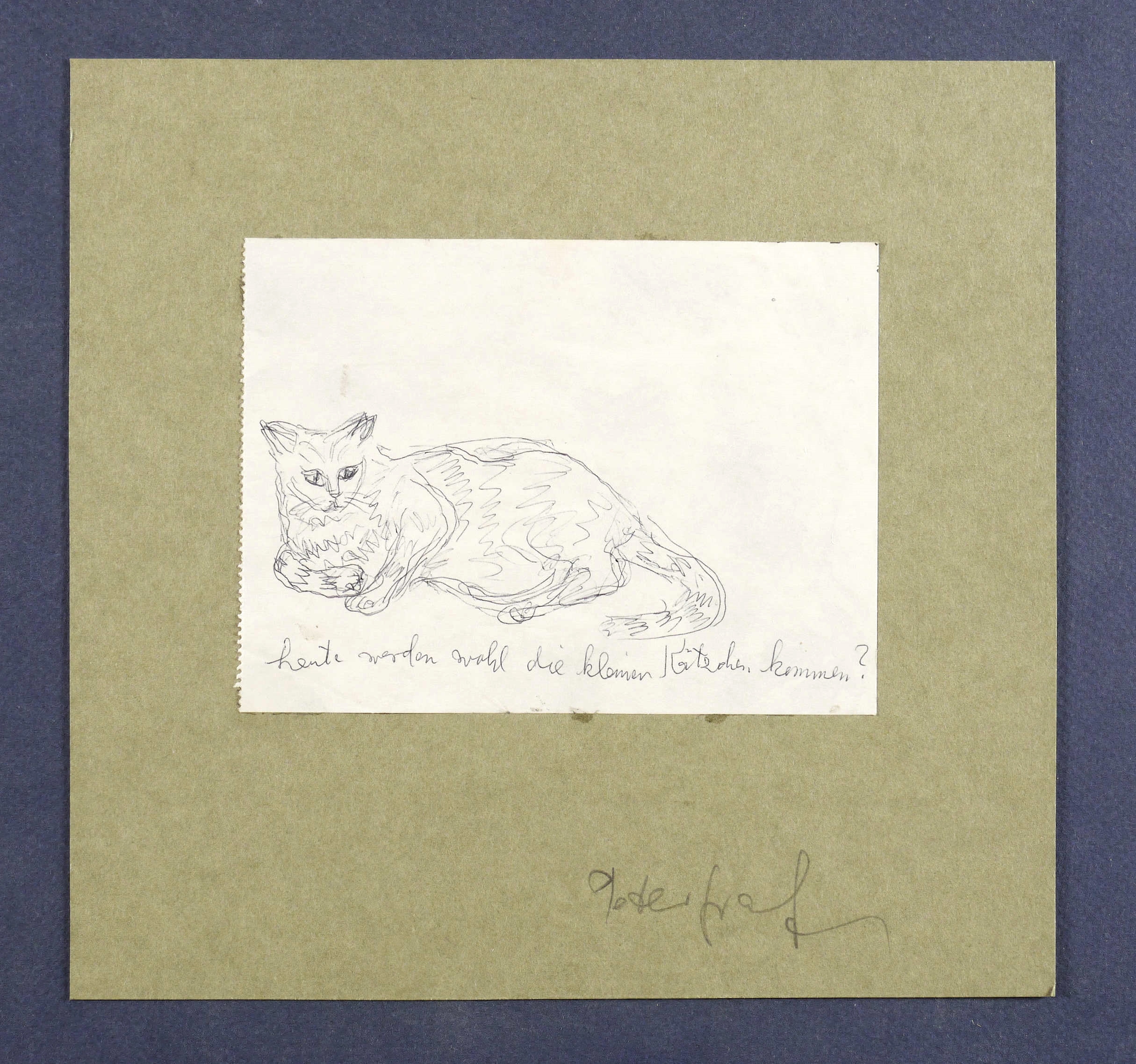 Auf dem Trägerkarton rechts unten in Bleistift signiert: ″Peter Graf″. Direkt unter der Darstellung Inschrift: ″heute werden wohl die kleinen Kätzchen kommen?″ – Auf Trägerkarton gesetzt. Insgesamt guter Zustand.