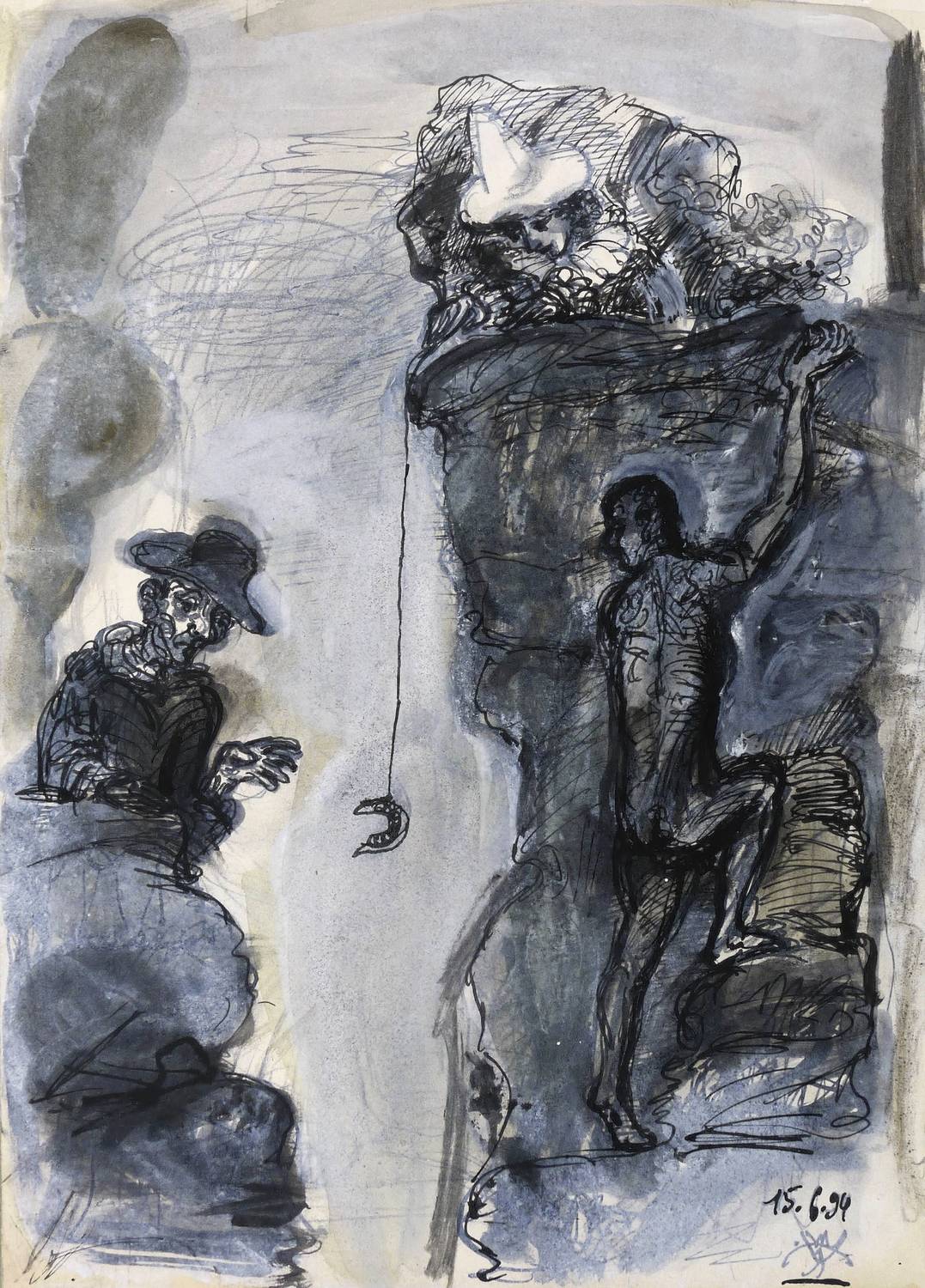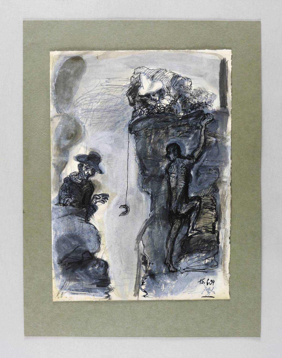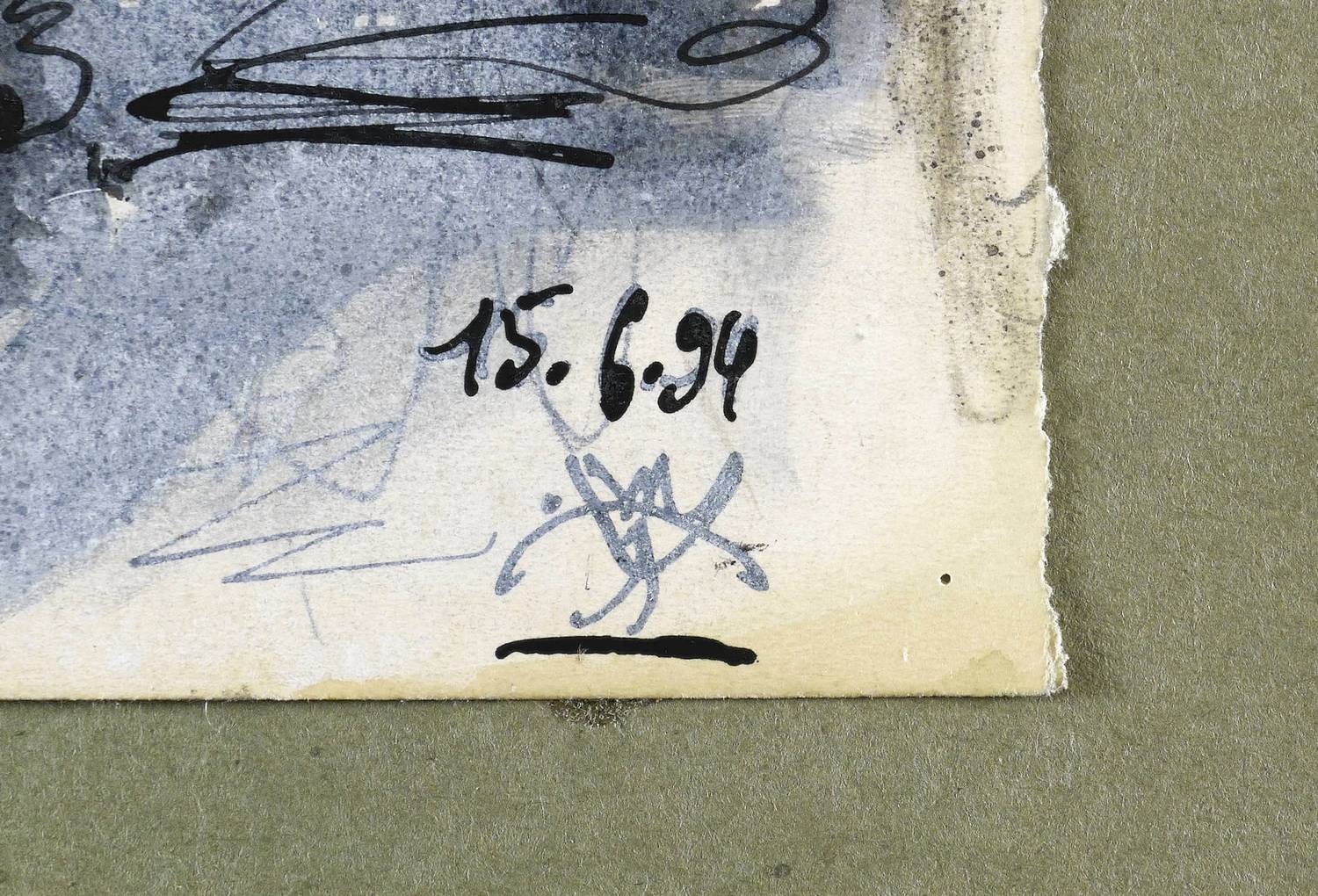 In der Darstellung rechts unten in blauer Feder Künstler-Signet und Datum: ″15.6.94″. – Provenienz: Sammlung Dr. Ingrid und Prof. Dr. Albrecht Scholz, Dresden. – Sehr guter Zustand. Original vom Künstler auf graugrünen Karton gesetzt.