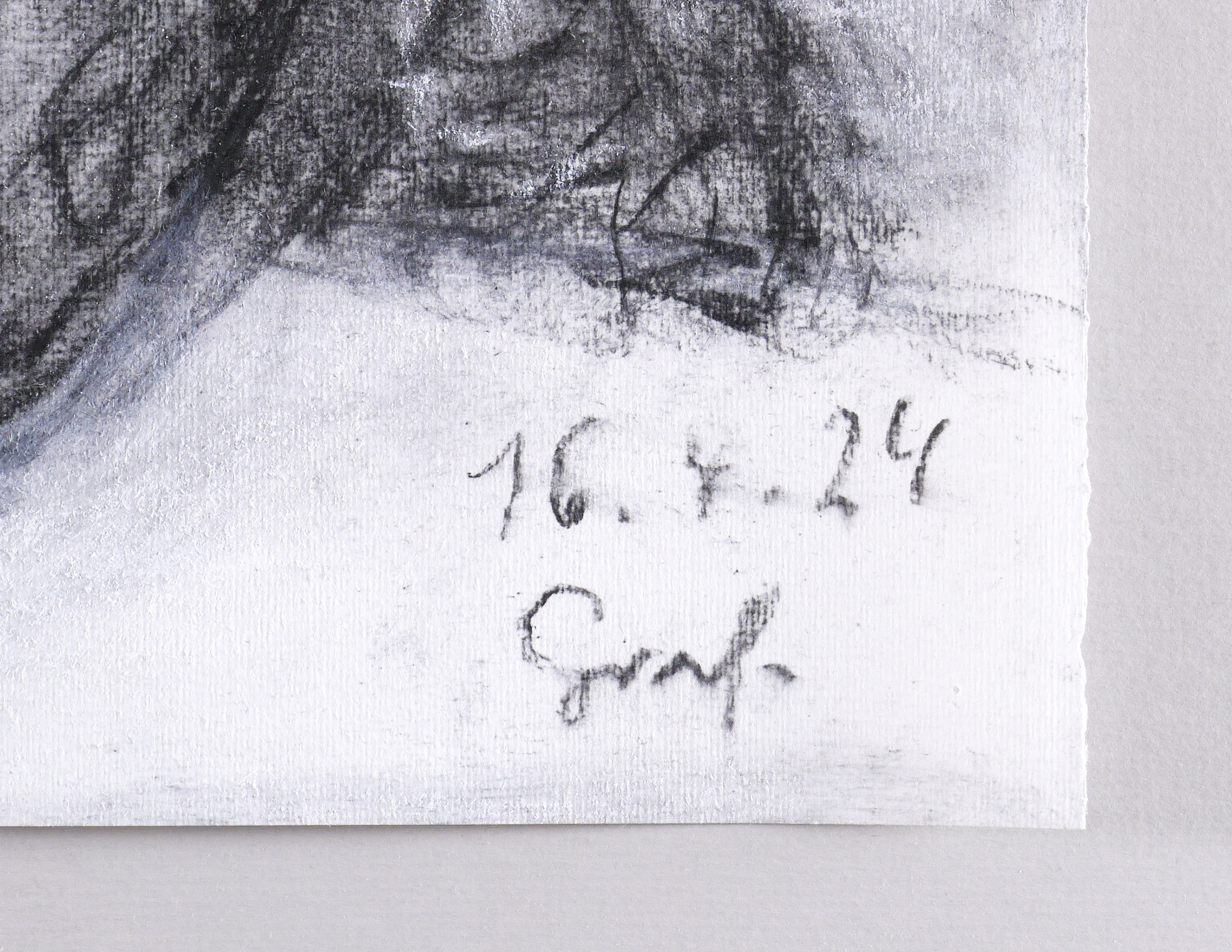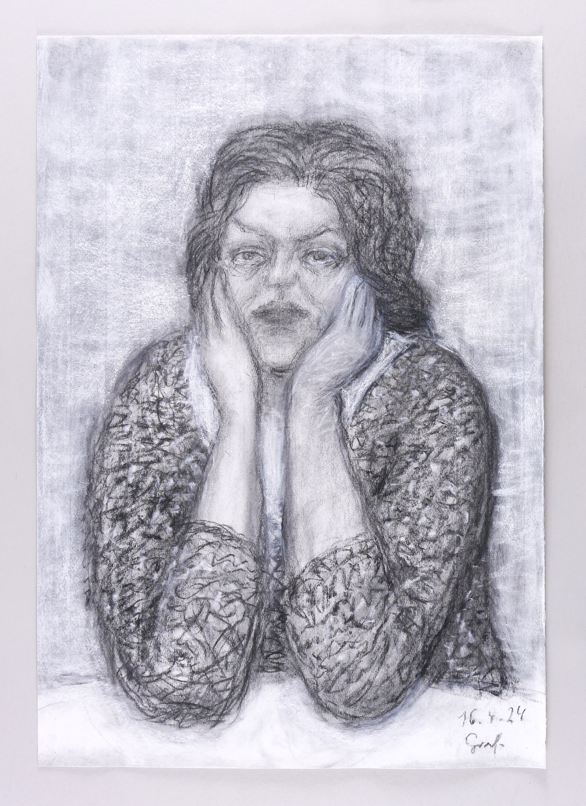 2024. Zeichnung / Kohle- & Kreidezeichnung, partiell gewischt, auf Karton. – Originale Künstlergrafik, von Peter Graf. – Unikat. – 74,2 x 51,8 cm (Darstellung / Blatt).
