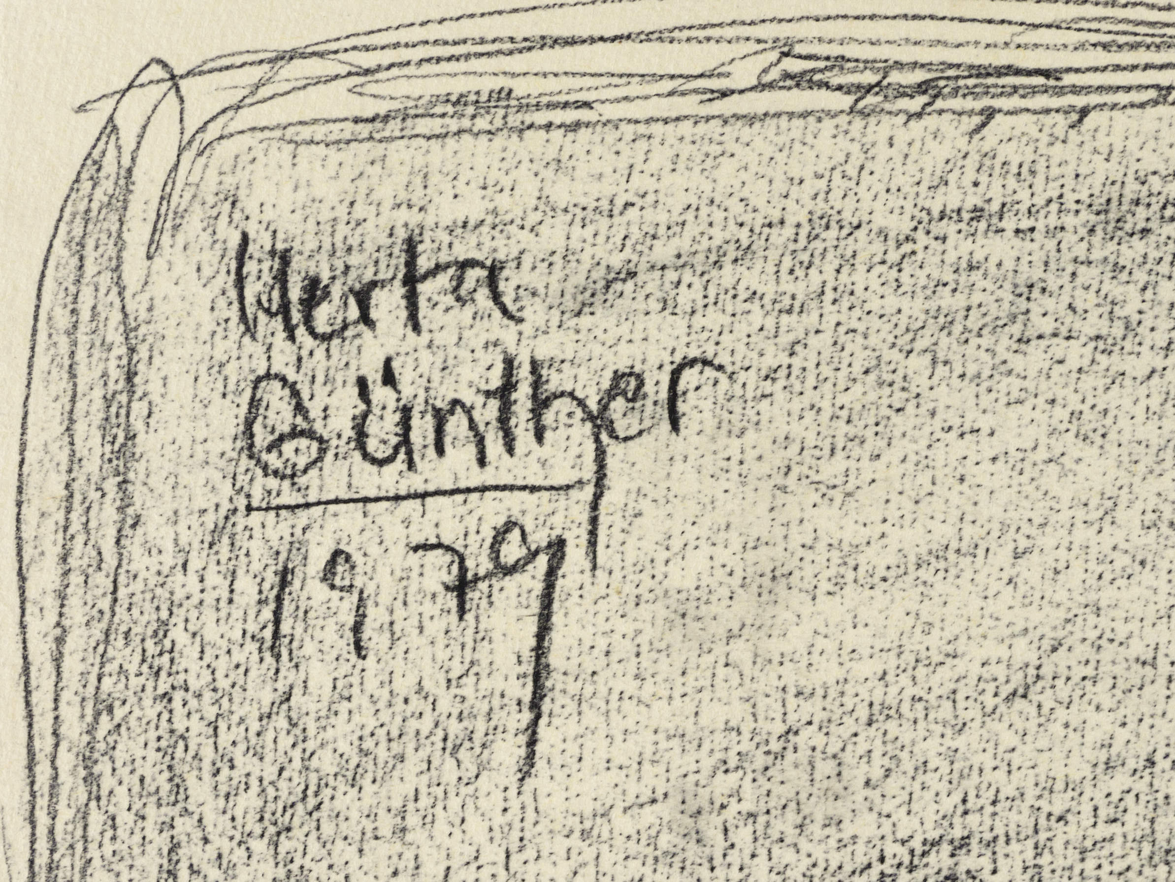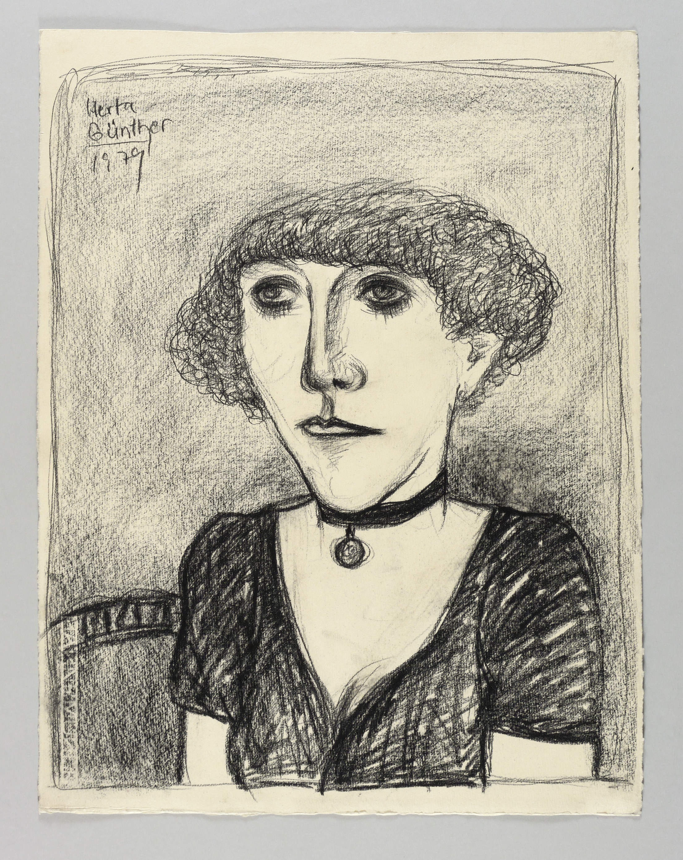 1979. Zeichnung / Kreidezeichnung, in schwarzer Kreide, auf chamois Hahnemühle. – Originale Künstlergrafik, von Herta Günther. – Unikat. – 51,0 x 39,5 cm (Darstellung / Blatt).