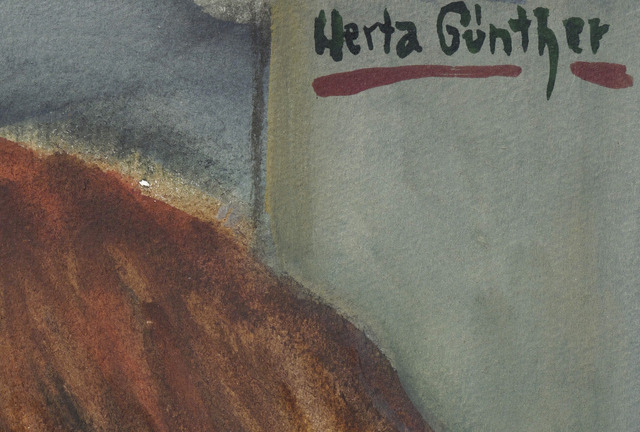 Herta Günther (1934 Dresden - 2018 Dresden). Deutsche Malerin und Grafikerin. 1951-56 Studium an der Hochschule für Bildende Künste bei Hans Theo Richter und Max Schwimmer. Seit 1956 im Verband bildender Künstler. Ab 1957 freischaffend. Zahlreiche Reisen ins Ausland. 1966 erste Einzelausstellung. 1970 eigenes Atelier im Haus des heutigen Societätstheaters Dresden. 1978 Eröffnung der Ausstellung im Glockenspielpavillon Dresden durch Dr. Fritz Löffler. 1983 Werkverzeichnis der Druckgrafik. 1989 umfangreiche Ausstellung mit Katalog im Museum Galerie Junge Kunst in Frankfurt/Oder. Herta Günther zählt zu den wichtigsten Dresdner Künstlerinnen des 20. Jahrhunderts.