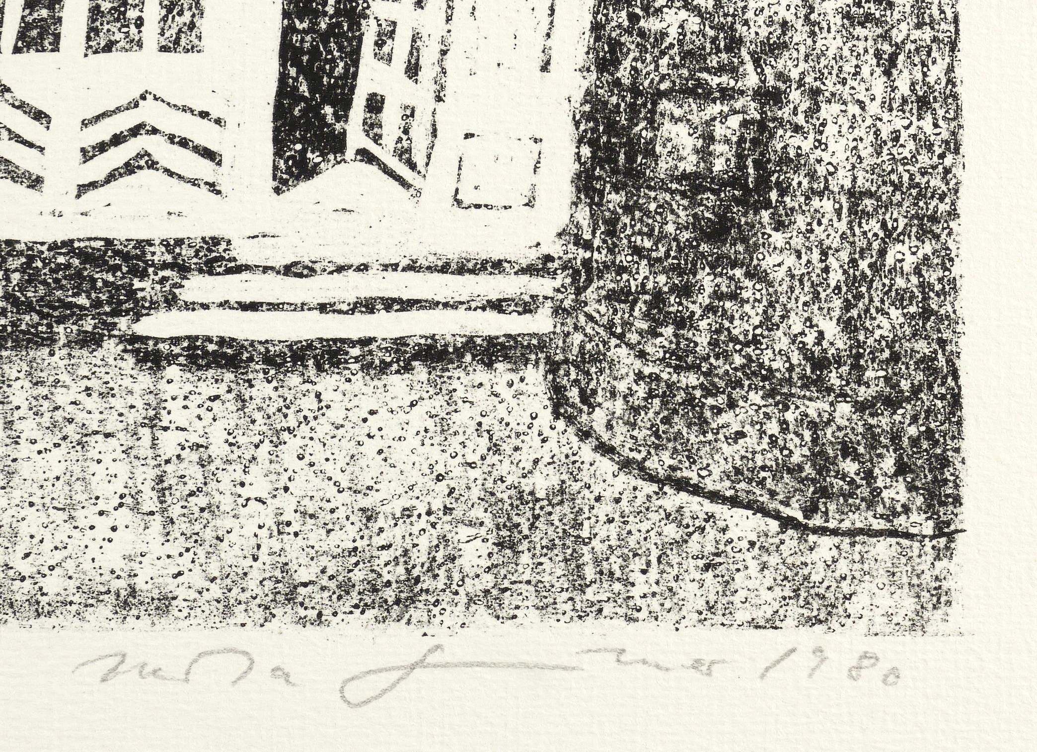 1980. Zinkografie / Kreidezinkografie, partiell geschabt, in Schwarz, auf hellchamois Maschinenbütten. – Originale Künstlergrafik, von Herta Günther. – Auflage Exemplar Nr. 21/35. – 27,2 x 36,0 cm (Darstellung / Druckbild), 41 x 51 cm (Blatt).
