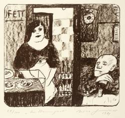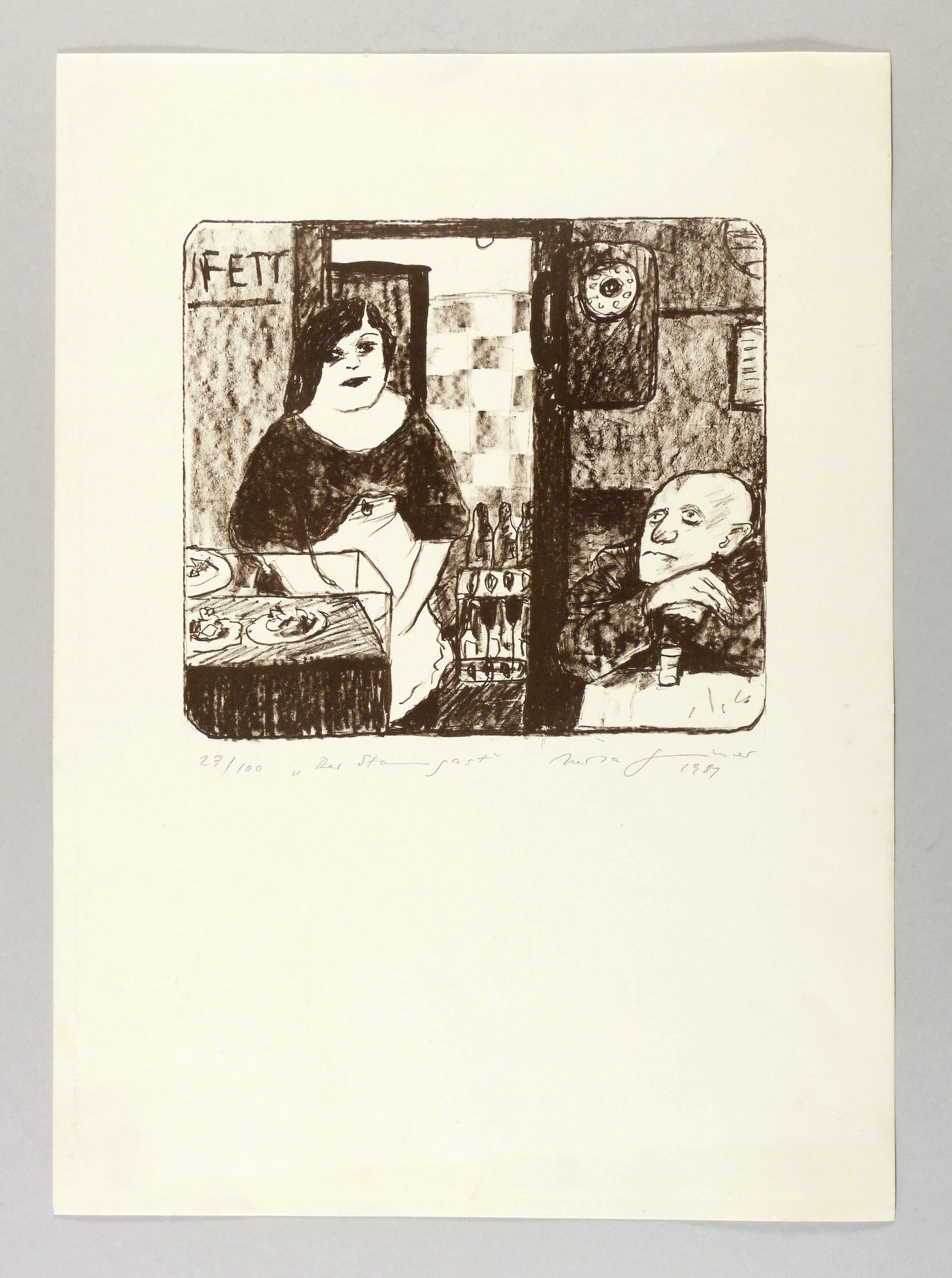 1981. Algrafie / Kreidealgrafie, in Schwarzbraun, auf hellgelbem Karton. – Originale Künstlergrafik, von Herta Günther. – Auflage Exemplar Nr. 27/100. – 22,0 x 24,6 cm (Darstellung / Druckbild), 49 x 35,5 cm (Blatt).