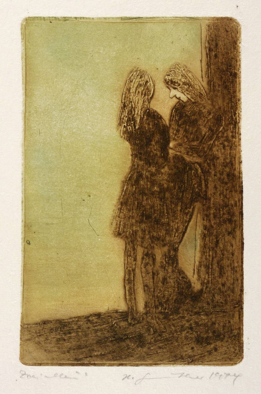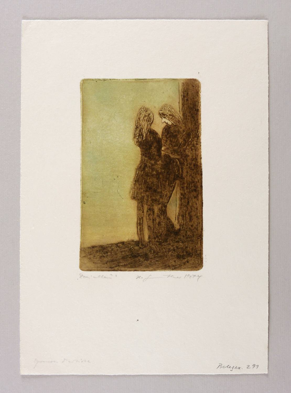 1974/1975. Farbradierung / Reservage & Kaltnadel, in Grün & Braunviolett, auf hellchamois Velin. – Originale Künstlergrafik, von Herta Günther. – Künstlerexemplar (e.a.). – 15,1 x 9,6 cm (Darstellung / Platte), 28 x 20 cm (Blatt).