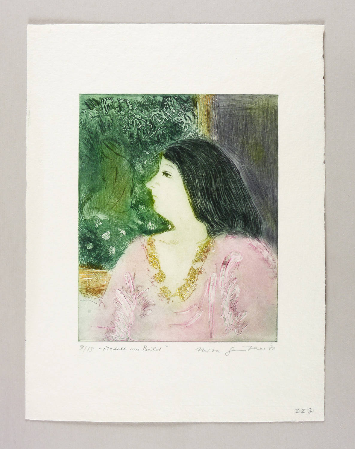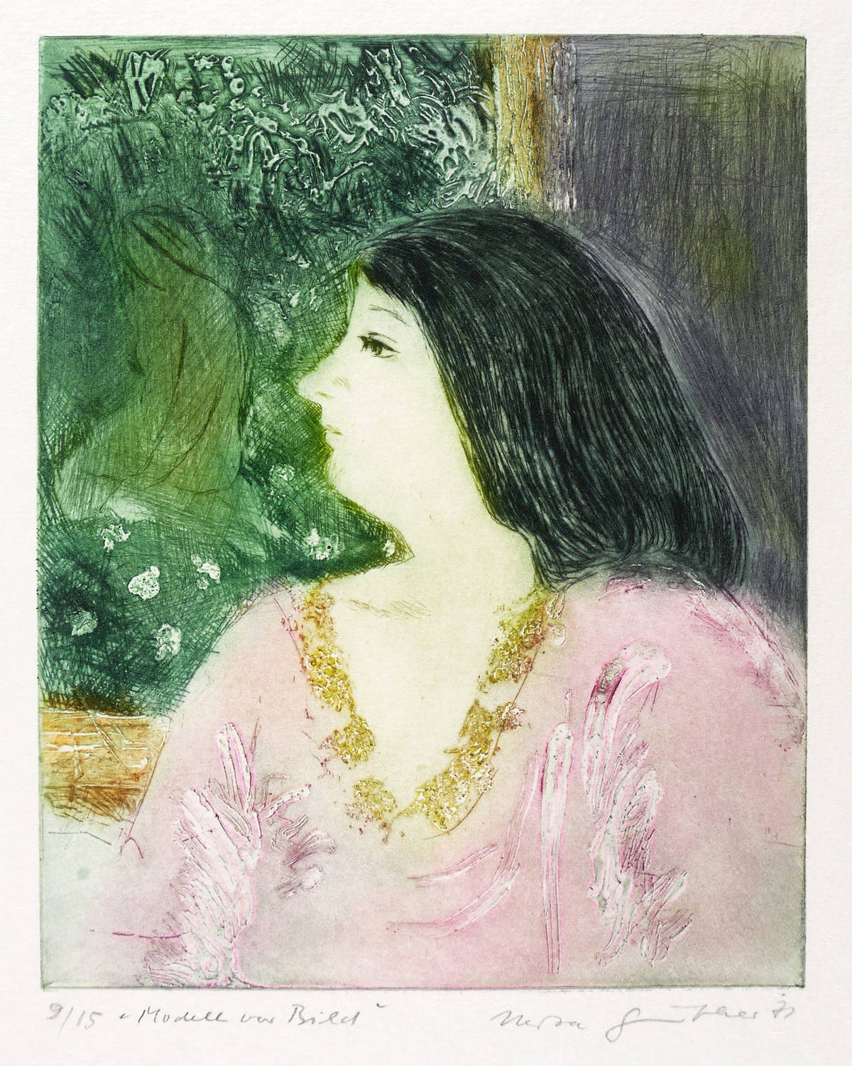 Schmidt 200. – Rechts unten in Bleistift signiert und datiert: ″Herta Günther 71″. Links Auflagenbezeichnung und Titel: ″9/15 Modell vor Bild″. Unten rechts nummeriert. – Das Werkverzeichnis (Schmidt) gibt abweichend als Titel ″Modell vor Bildnis″ an. – Tadellos. Sehr guter Zustand.