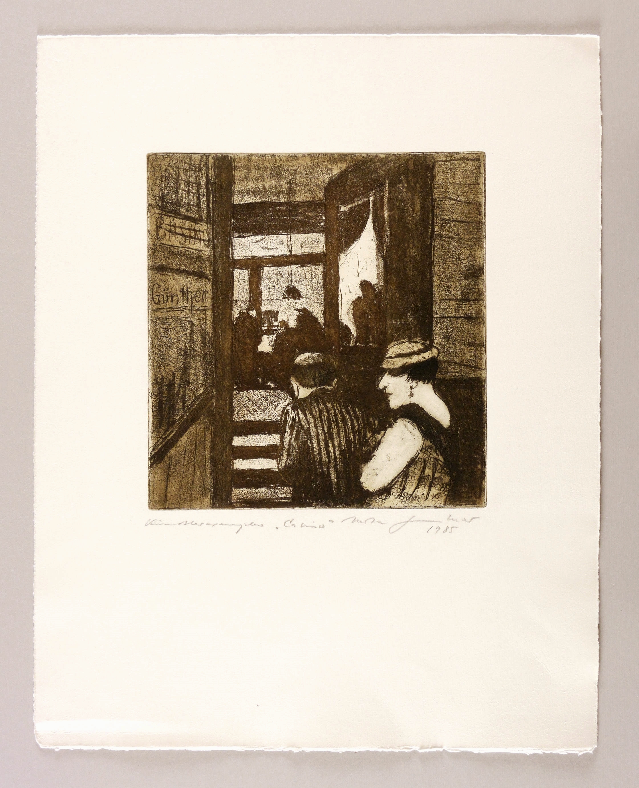 Rechts unten in Bleistift signiert und datiert: ″Herta Günther 1985″. Links Auflagenbezeichnung und Titel: ″Künstlerexemplar 'Casino'″. In der Platte links oben Inschrift: ″CASINO // Günther″. – Horizontale Knickspur im äußeren unteren Rand. Sonst ohne Mangel. Mäßig guter Zustand.
