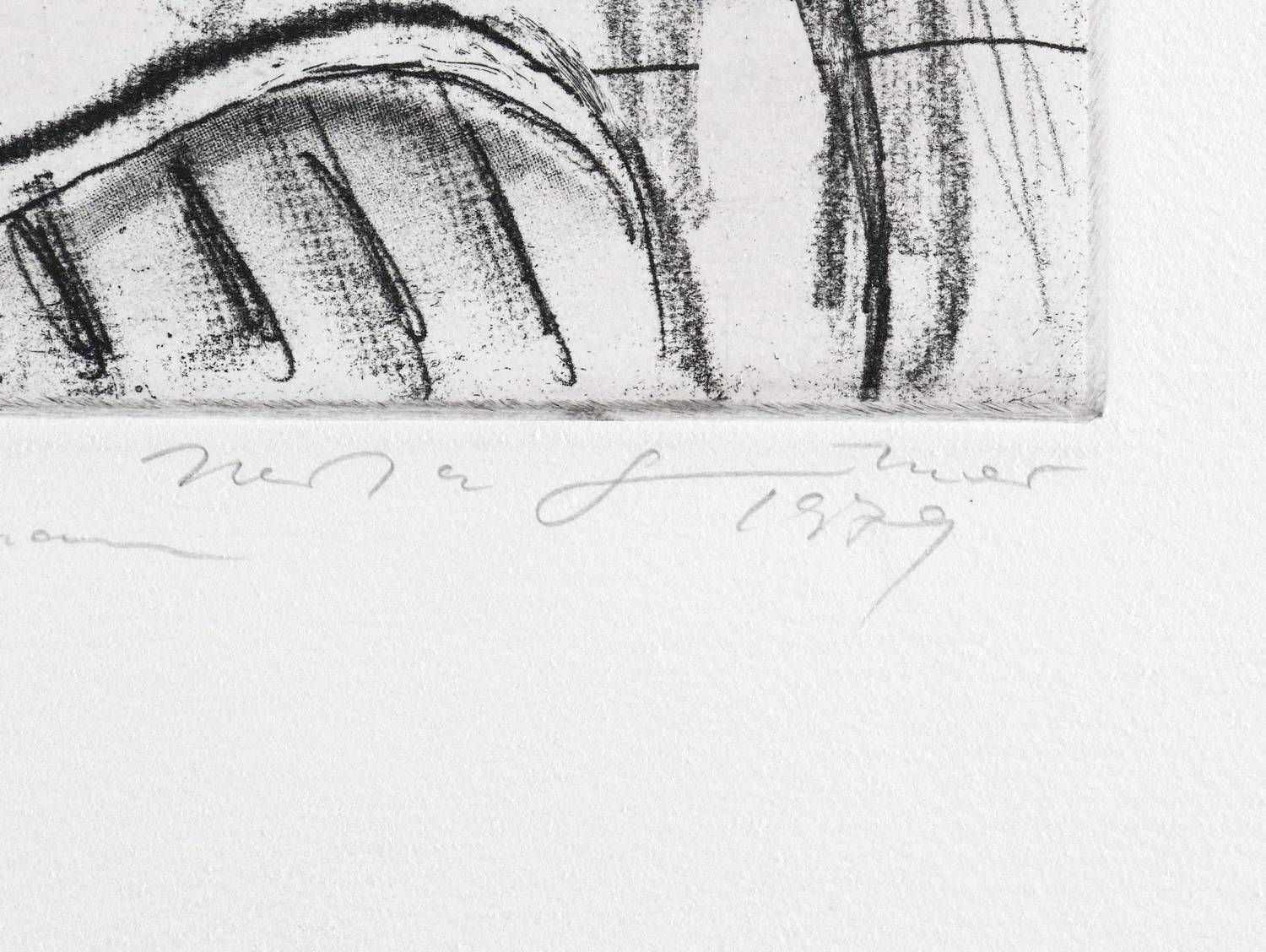 1979. Radierung / Vernis mou & Strichätzung, in Schwarz, auf weichem hellchamois Hahnemühle. – Originale Künstlergrafik, von Herta Günther. – Auflage Exemplar Nr. 12/50. – 33,3 x 24,5 cm (Darstellung / Platte), 49 x 34 cm (Blatt).