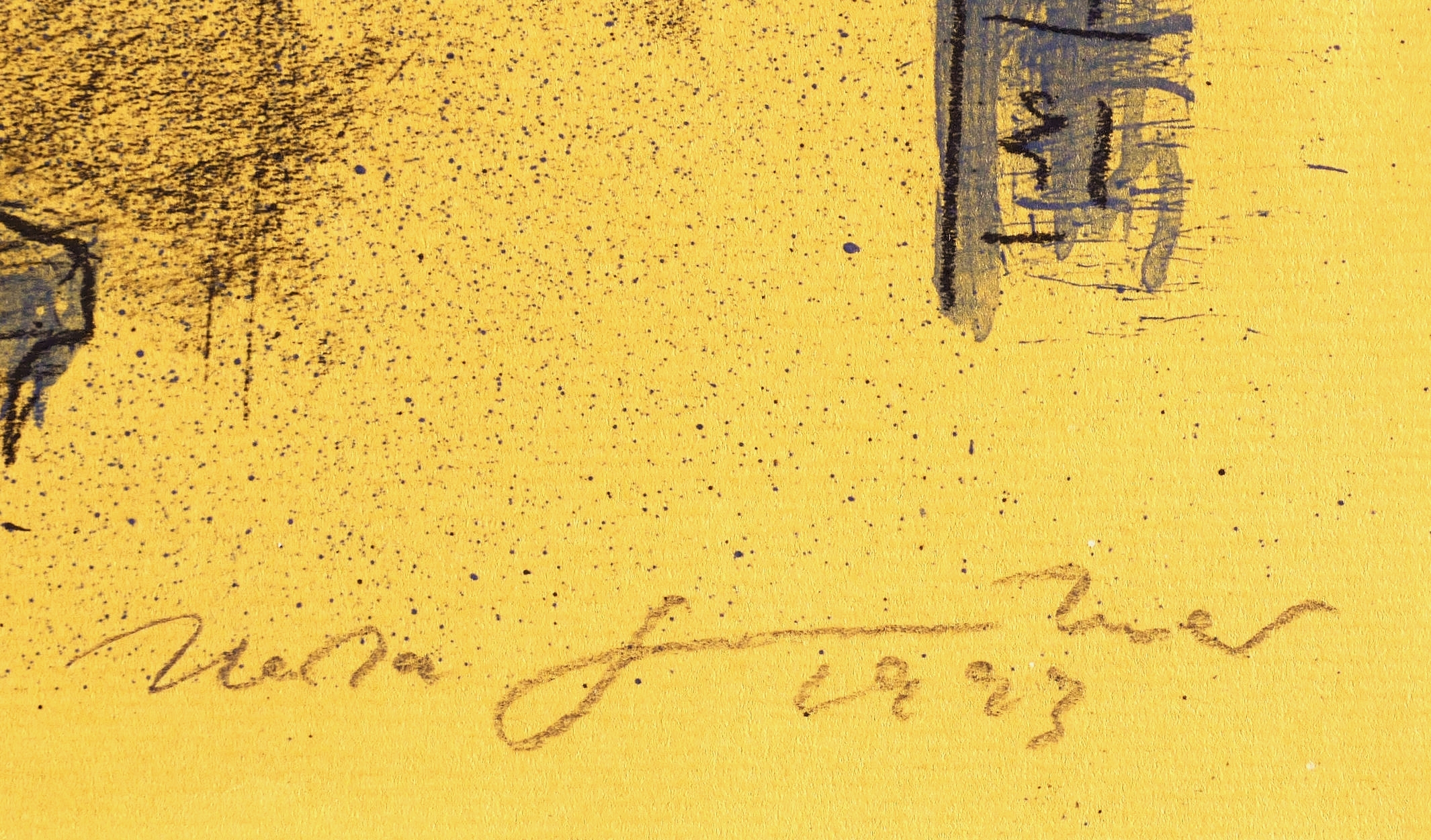1993. Farbzinkografie / Kreidezinkografie, in 3 Farben, in Kreide koloriert, auf hellorange Maschinenbütten. – Originale Künstlergrafik, von Herta Günther. – Auflage Exemplar Nr. 1/30 - Unikat. – 28,0 x 36,5 cm (Darstellung / Druckbild), 30 x 38 cm (Blatt).