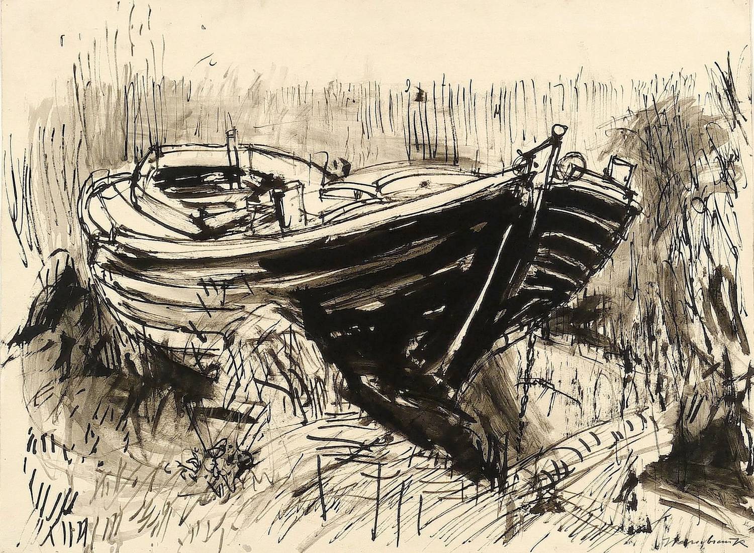 Hassebrauk, Ernst. – „Boot am Bodden (Fischland)”.