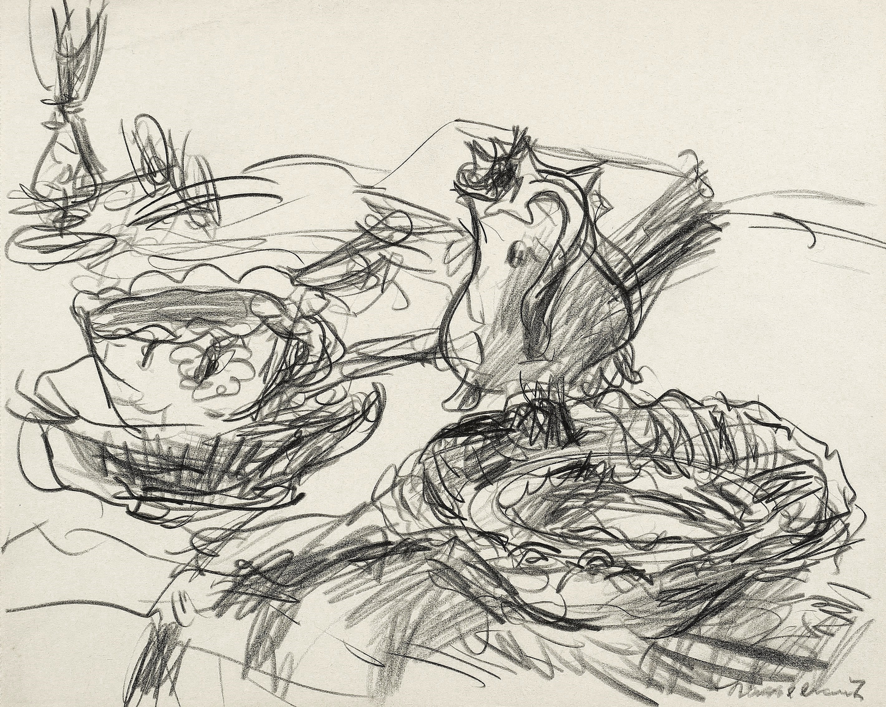 1960-1965. Zeichnung / Graphitzeichnung, auf hellgelbem Papier. – Originale Künstlergrafik, von Ernst Hassebrauk. – Unikat. – 30,0 x 37,1 cm (Darstellung / Blatt), 39 x 53 cm (Passepartout).