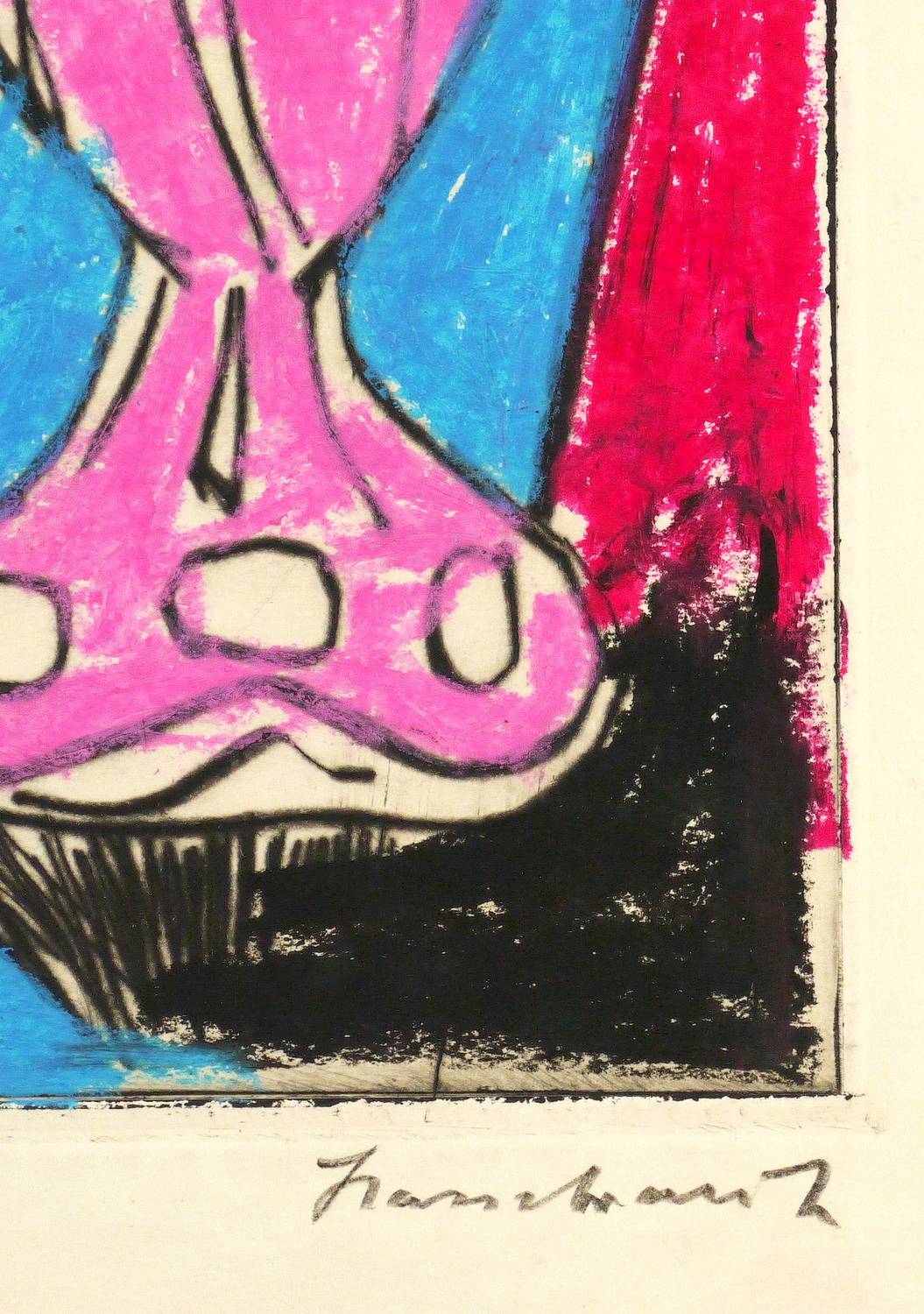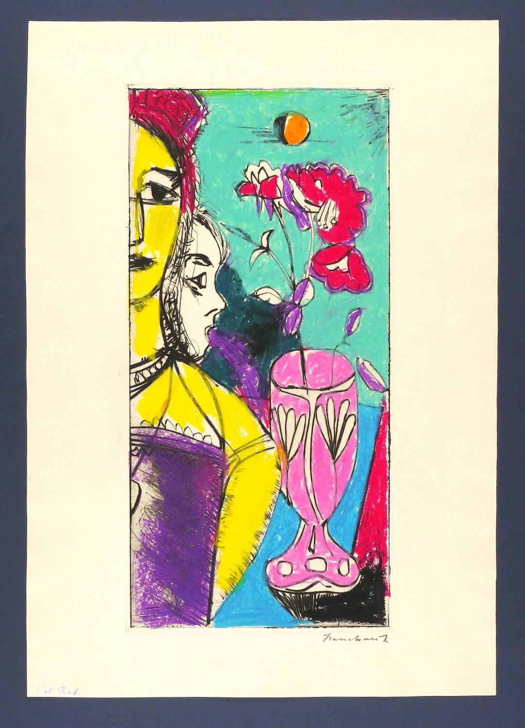 Um 1955. Radierung / Kaltnadel, in Pastellkreide überarbeitet, auf Kupferdruckkarton. – Originale Künstlergrafik, von Ernst Hassebrauk. – Unikat. – 47,7 x 23,4 cm (Darstellung / Platte), 59 x 41 cm (Blatt).
