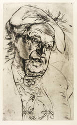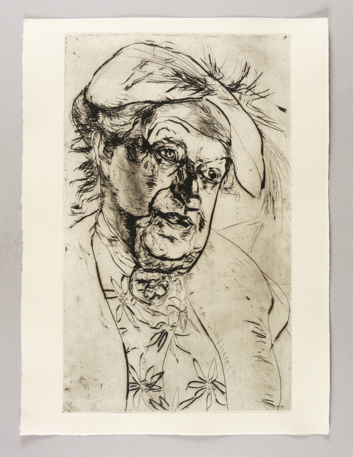 Lau 189. – Verso in Bleistift von Charlotte Hassebrauk authorisiert: ″p.m. Ernst Hassebrauk″. Weiter original betitelt: ″Sophie Rade″. Dazu Auflagenbezeichnung. – Posthumer Abzug von der originalen Platte für die Mappe ″Ernst Hassebrauk. Frauenbildnisse″, die 1985 von der Witwe Charlotte Hassebrauk als Edition der eikon Grafik-Presse im Verlag der Kunst Dresden in einer Gesamtauflage von 35 Exemplaren erschien. – Sehr guter Zustand.