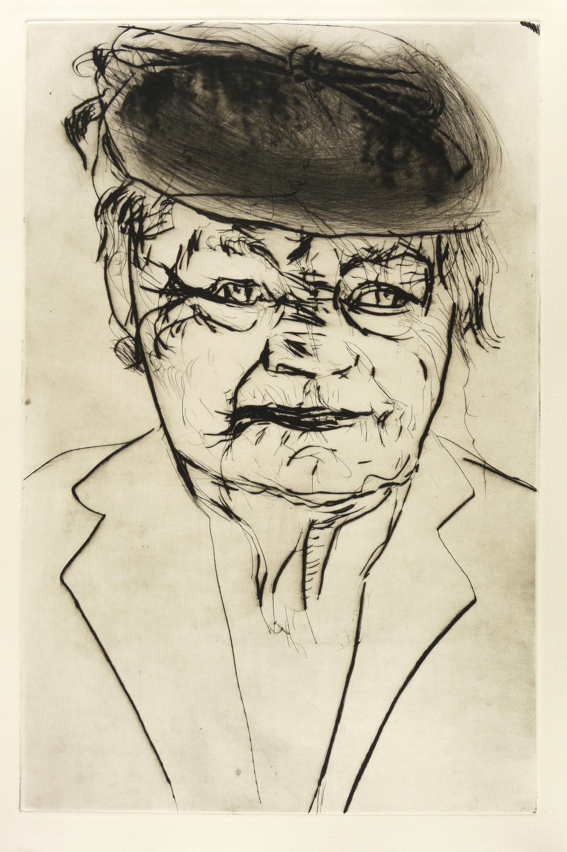 1957. Radierung / Kaltnadel, partiell geschliffen, in Schwarz, auf weichem gelbem Hahnemühle. – Originale Künstlergrafik, von Ernst Hassebrauk. – Auflage Exemplar Nr. 29/35. – 49,2 x 32,0 cm (Darstellung / Platte), 54 x 40 cm (Blatt).