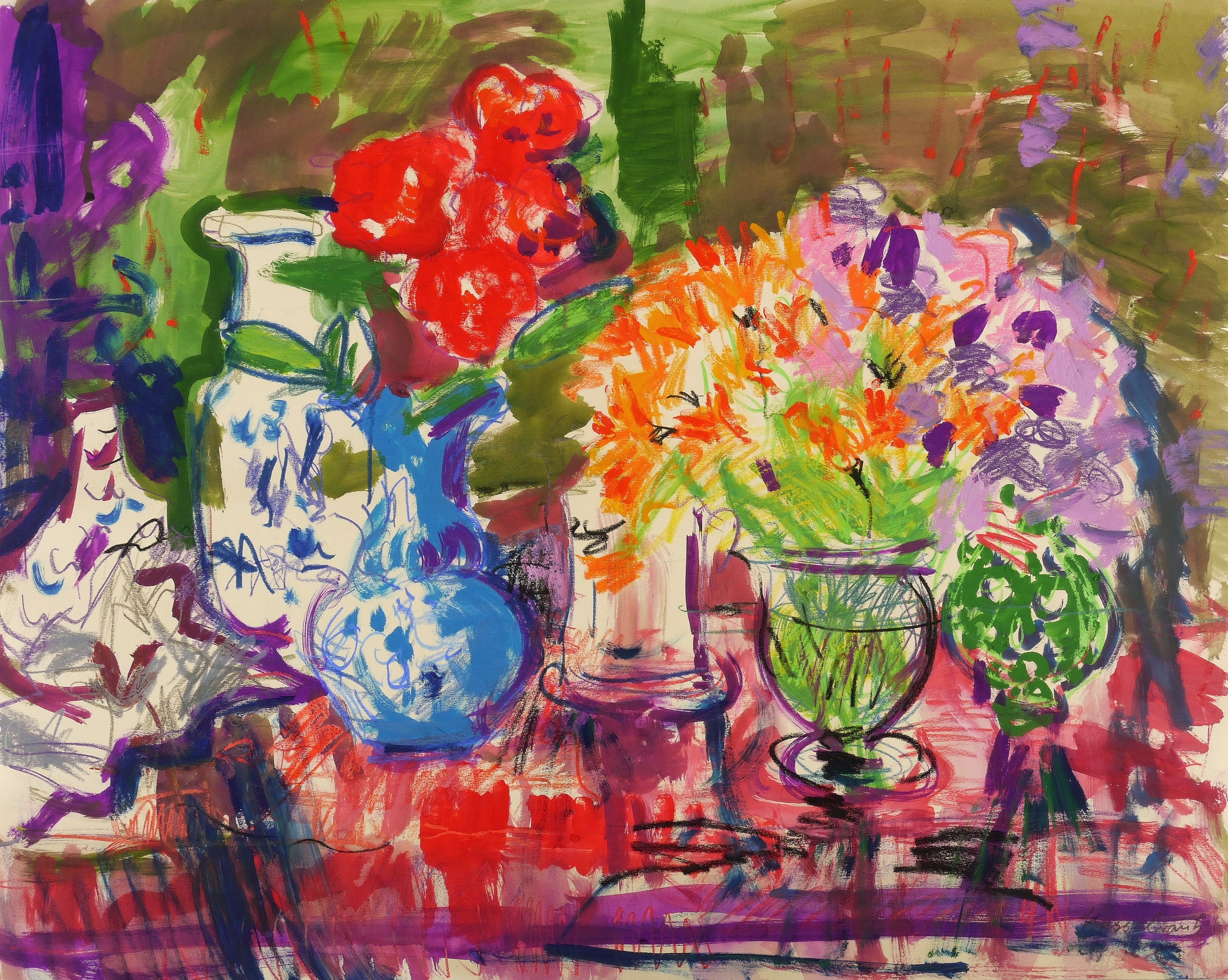 Hassebrauk, Ernst. – „Großes Stillleben mit Blumenvasen”.