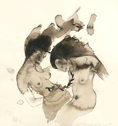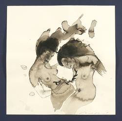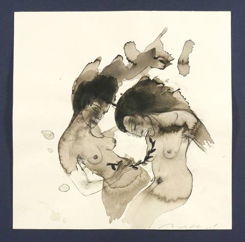 2007. Zeichnung / Graphit & Tusche, in Schwarz, grau laviert, auf hellchamois Velin. – Originale Künstlergrafik, von Angela Hampel. – Unikat. – 30,0 x 30,0 cm (Darstellung / Blatt).