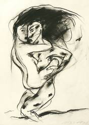 Um 2010. Zeichnung / Kohlezeichnung, partiell gewischt, auf hellchamois Velin. – Originale Künstlergrafik, von Angela Hampel. – Unikat. – 44,0 x 31,5 cm (Darstellung / Blatt).