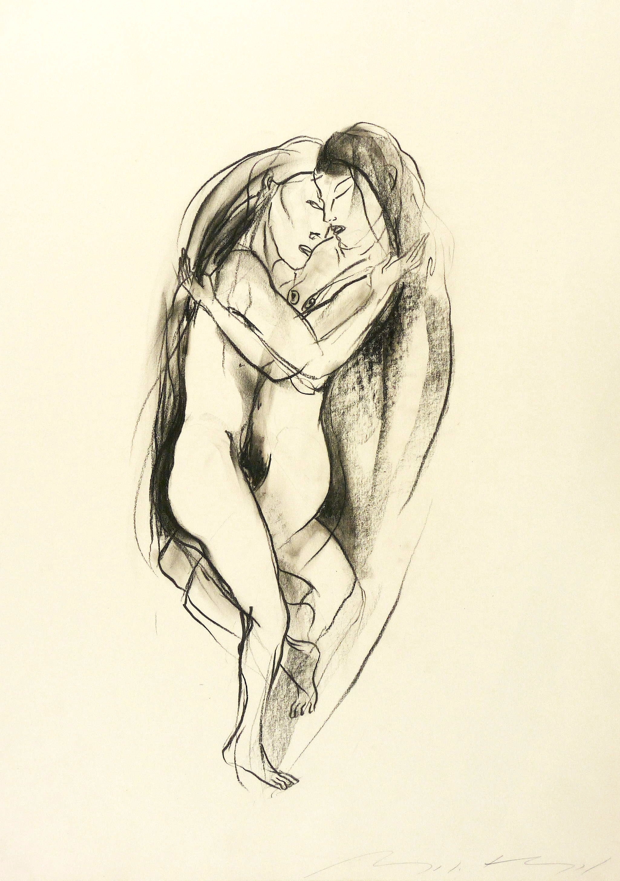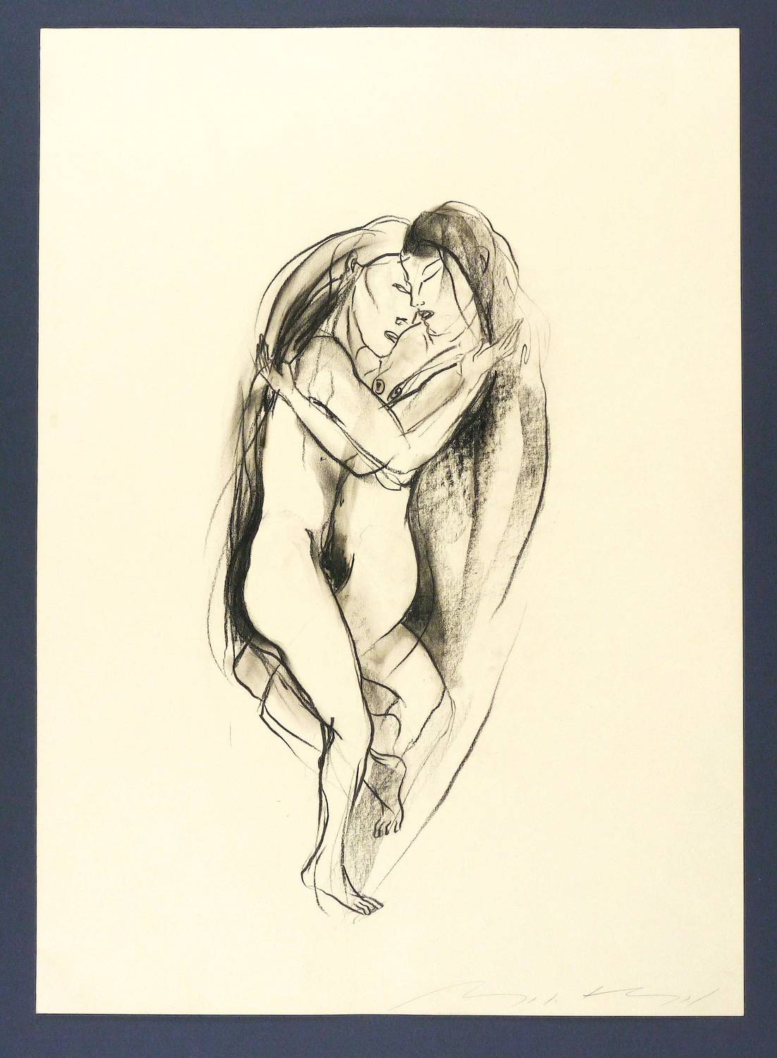 Um 2010. Zeichnung / Kohlezeichnung, partiell gewischt, auf hellchamois Velin. – Originale Künstlergrafik, von Angela Hampel. – Unikat. – 51,5 x 36,8 cm (Darstellung / Blatt).