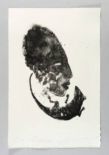 2018. Algrafie / Pinselalgrafie, in Schwarz, auf Hahnemühle-Bütten. – Originale Künstlergrafik, von Angela Hampel. – Künstlerexemplar (e.a.). – 32,0 x 21,5 cm (Darstellung), 45 x 30 cm (Blatt).