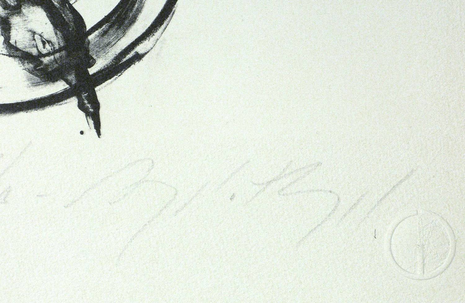 Rechts unten in Bleistift signiert. Links Auflagenbezeichnung. Mittig Titel. Wasserzeichen und Prägestempel der Druckpresse. – Tadelloses Exemplar.