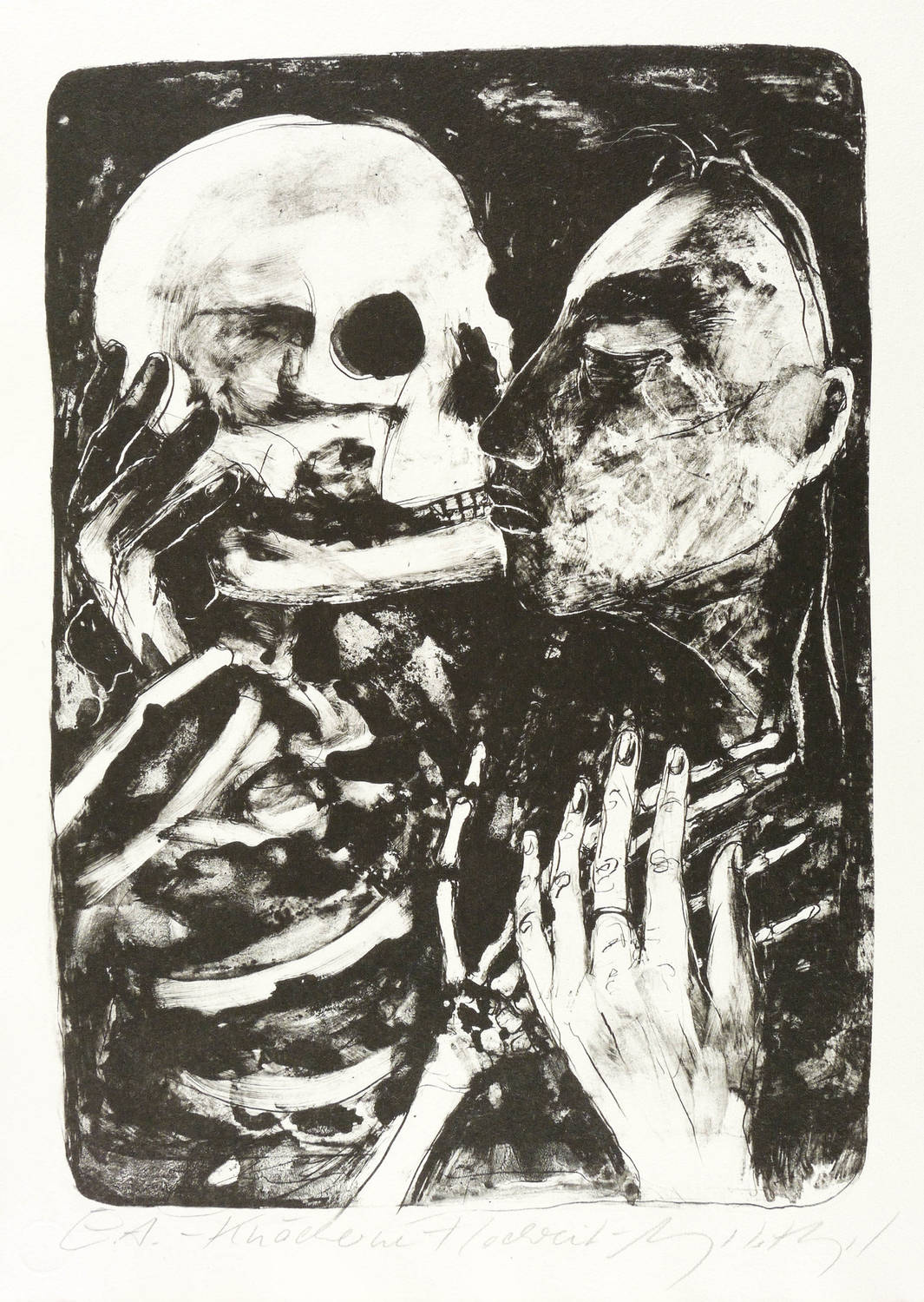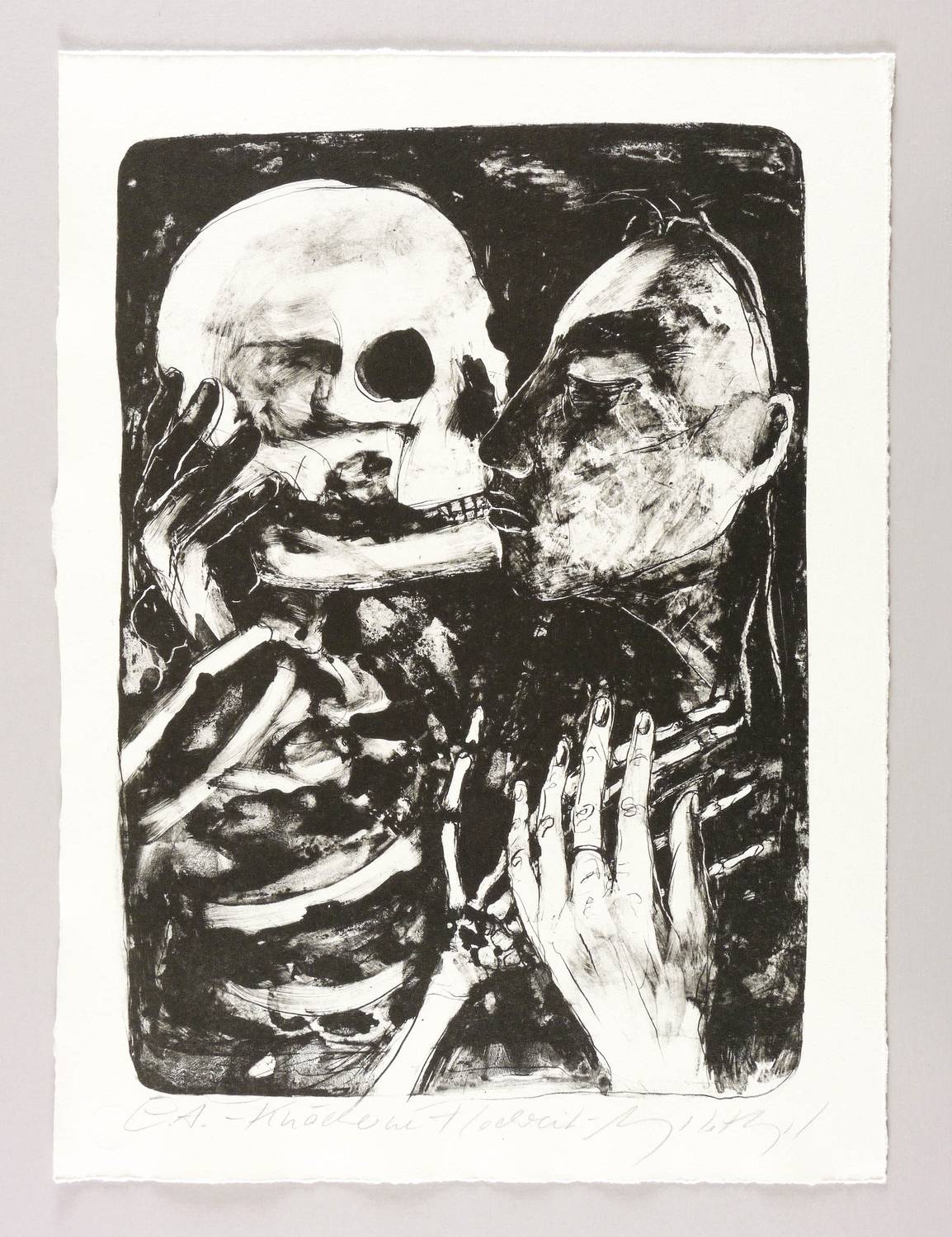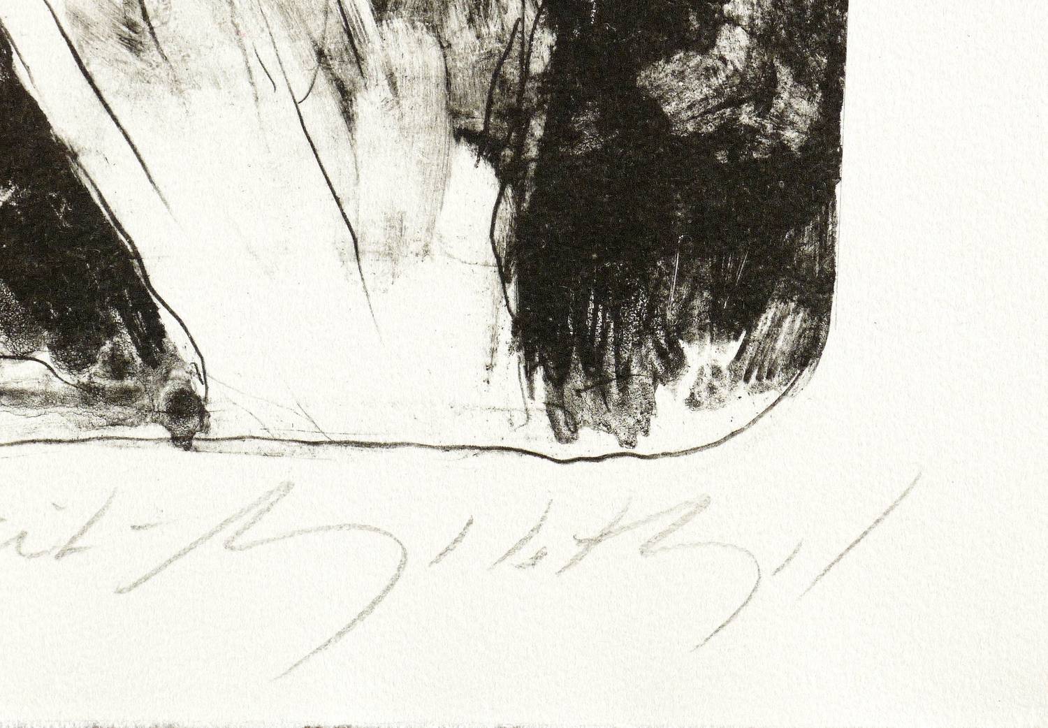 Um 2010. Algrafie, in Schwarz, auf Büttenpapier. – Originale Künstlergrafik, von Angela Hampel. – Künstlerexemplar (e.a.). – 39,5 x 28 cm (Darstellung), 46 x 34 cm (Blatt).