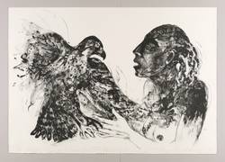 Angela Hampel (*1956 Räckelwitz, lebt und arbeitet in Dresden). Deutsche Malerin und Grafikerin. Lehre und Arbeit als Forstfacharbeiterin. 1977-82 Studium an der HfBK Dresden bei Jutta Damme und D. Büttner. Danach freischaffend. Mitbegründerin der Dresdner Sezession '89. Zahlreiche Einzelausstellungen u.a. in der Galerie Döbele. In ihren Figuren einen sich das Weibliche und das Männliche, das Menschliche und das Tierische, kämpfen gegen einander oder um einander - vital, agressiv und zärtlich zugleich.