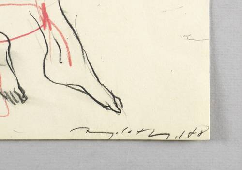 1988. Mischtechnik / Graphit & Farbkreide, in Rot & Schwarz, auf festem hellgelbem Velin. – Originale Künstlergrafik, von Angela Hampel. – Unikat. – 48,3 x 55,2 cm (Darstellung / Blatt).