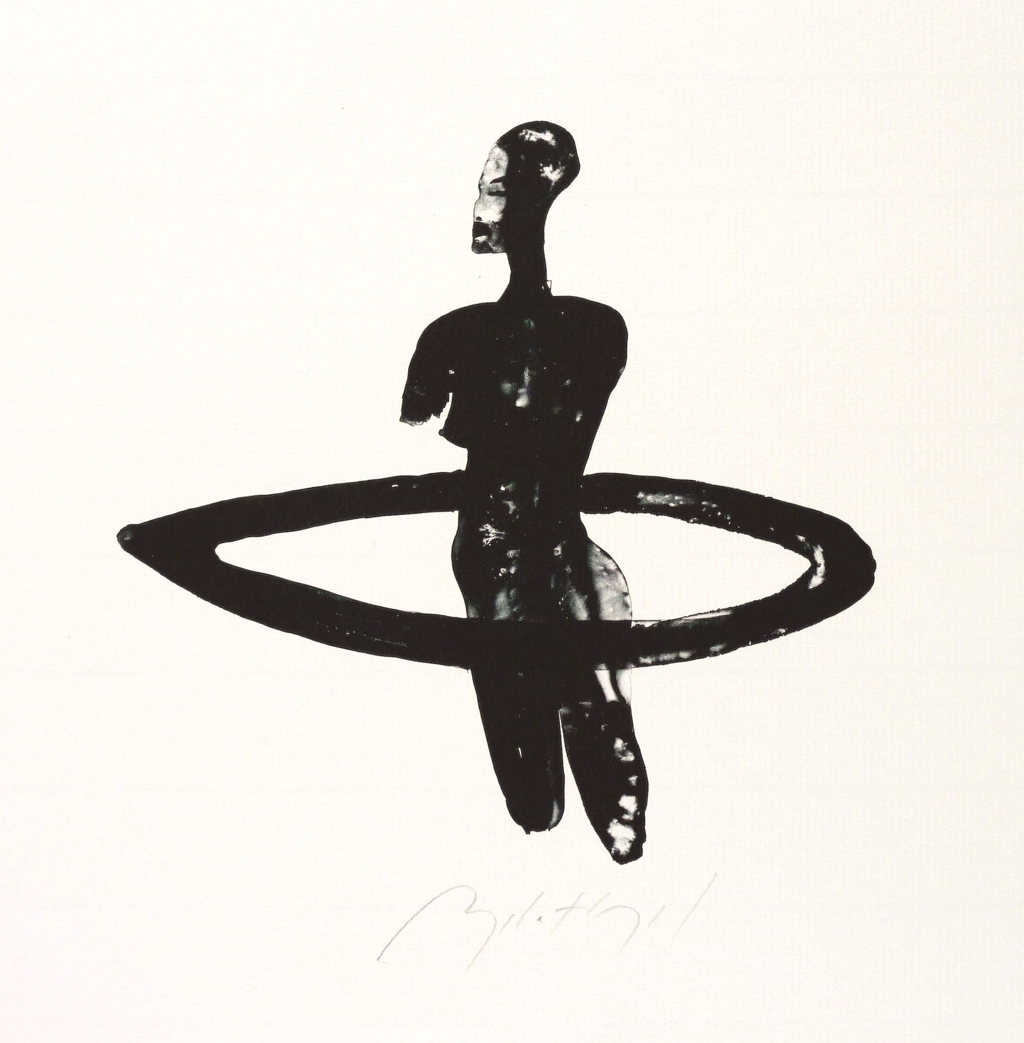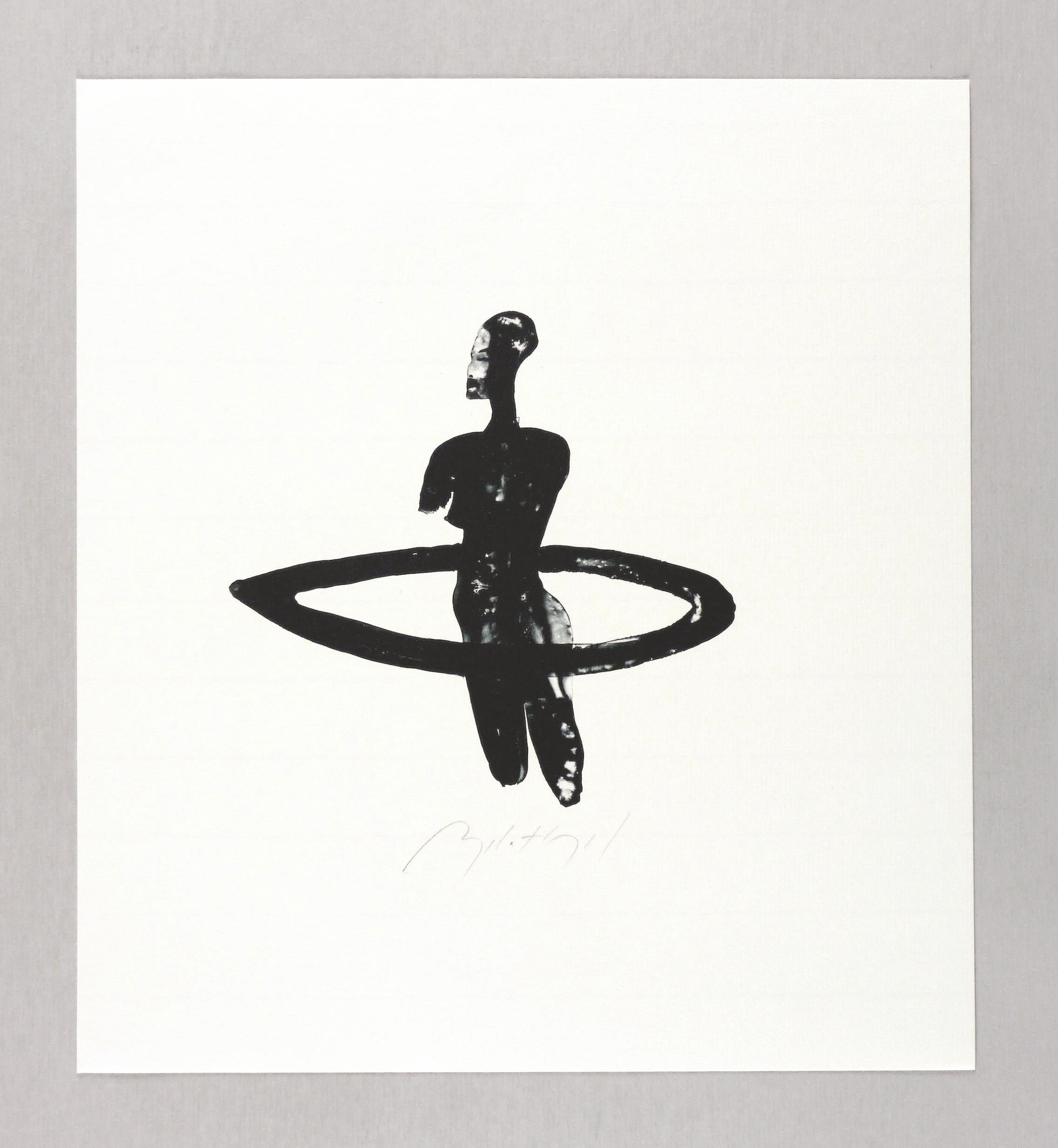 1998. Algrafie / Pinselalgrafie, in Schwarz, auf leichtem hellgelbem Maschinenbütten. – Originale Künstlergrafik, von Angela Hampel. – Auflage 120 Exemplare. – 16,7 x 17,1 cm (Darstellung / Druckbild), 34 x 30 cm (Blatt).