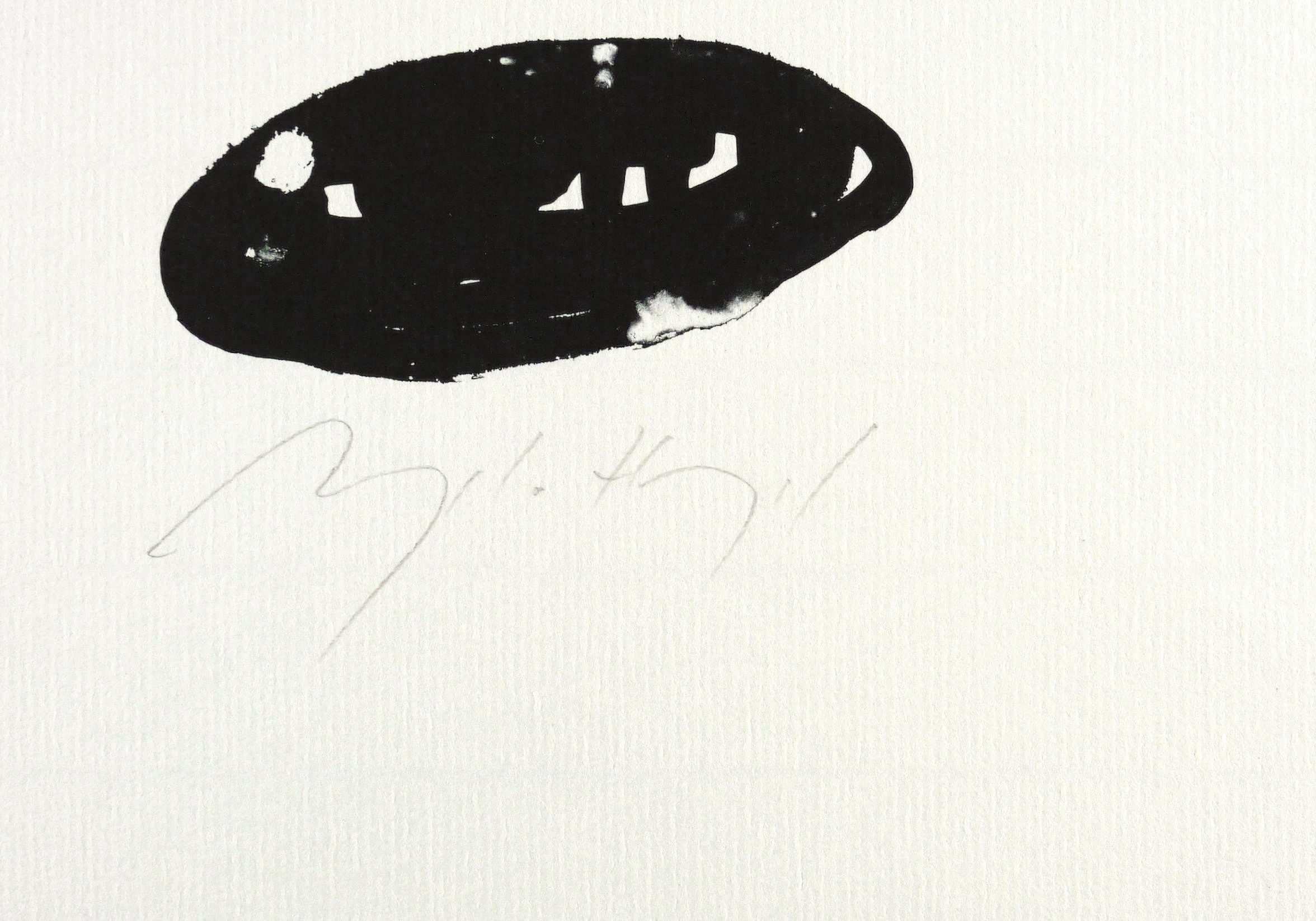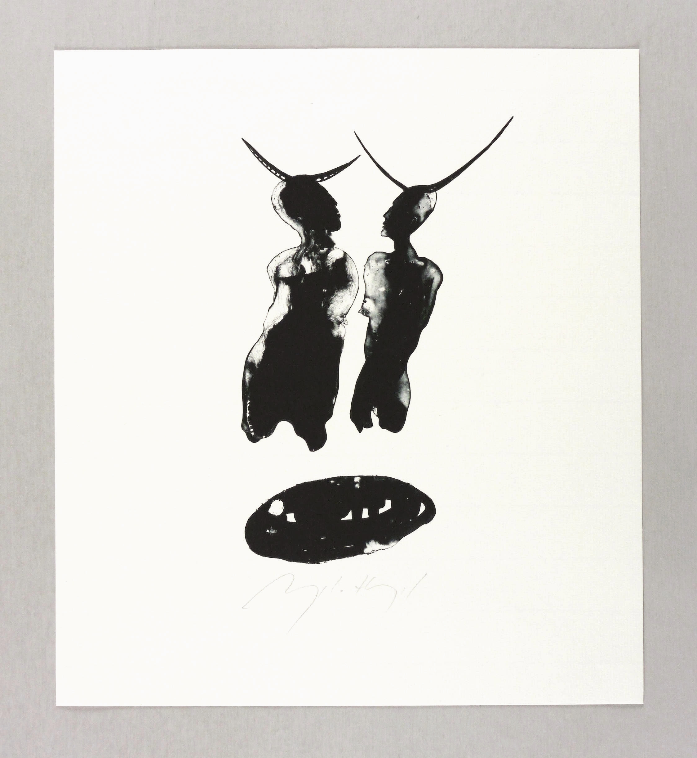 1998. Algrafie / Pinselalgrafie, in Schwarz, auf leichtem hellgelbem Maschinenbütten. – Originale Künstlergrafik, von Angela Hampel. – Auflage 120 Exemplare. – 23,7 x 13,9 cm (Darstellung / Druckbild), 34 x 30 cm (Blatt).